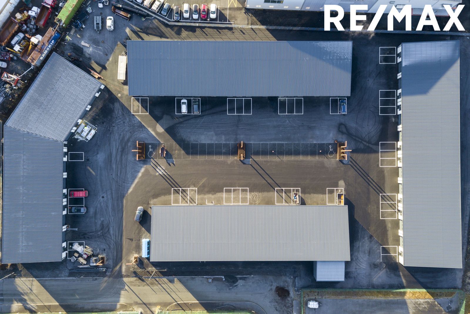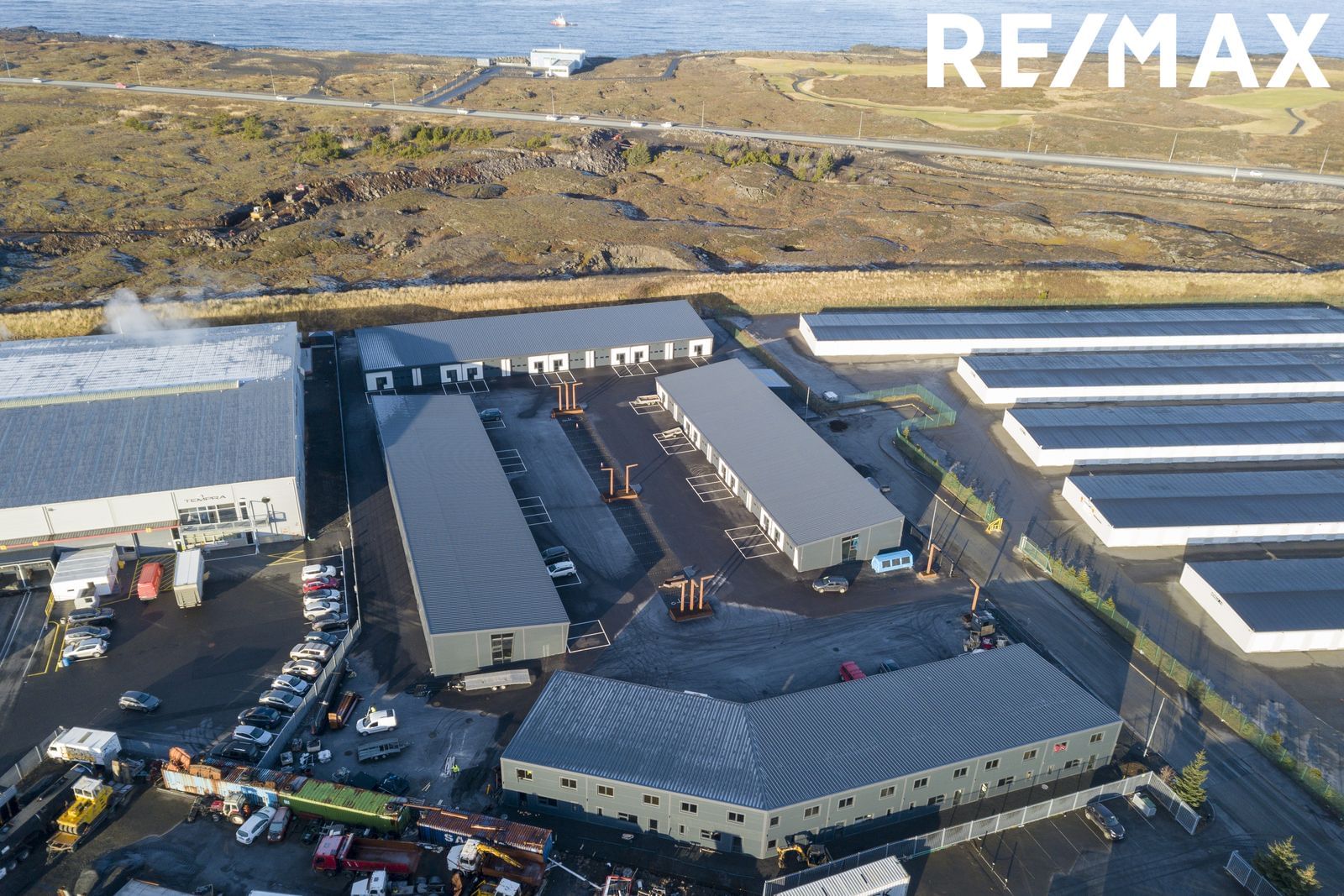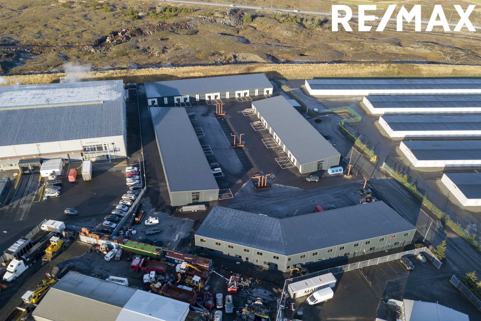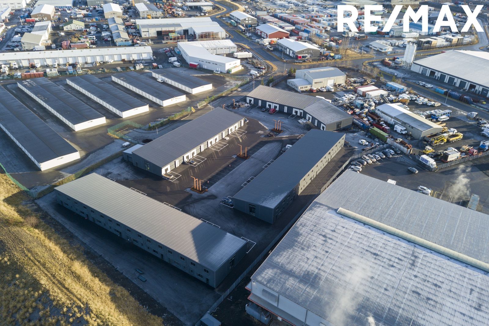 Tvær gönguhurðar, innkeyrsluhurð er 3,25 m á hæð og 3,25 m á breidd með rafmagnsopnun. Baðherbergi er með klósetti, svartri innréttingu og sturtuklefa. Innandyra er dimmanleg LED lýsing og þriggja fasa rafmagn auk útiljósa. Olíuskilja er fyrir svæðið. Lóð er malbikuð að bilum og sérafnotaflötur malbikaður. Lóðin er girt af með rafmagnshliði. Öryggismyndavélakerfi er á svæðinu.