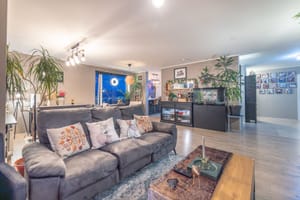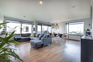 Stofa: Mjög rúmgóð stofa með útgengi á svalir. Gert er ráð fyrir "húsbóndaherbergi" á teikningu en ef það hefur einhverntíman verið þá hefur það nú verið fjarlægt.