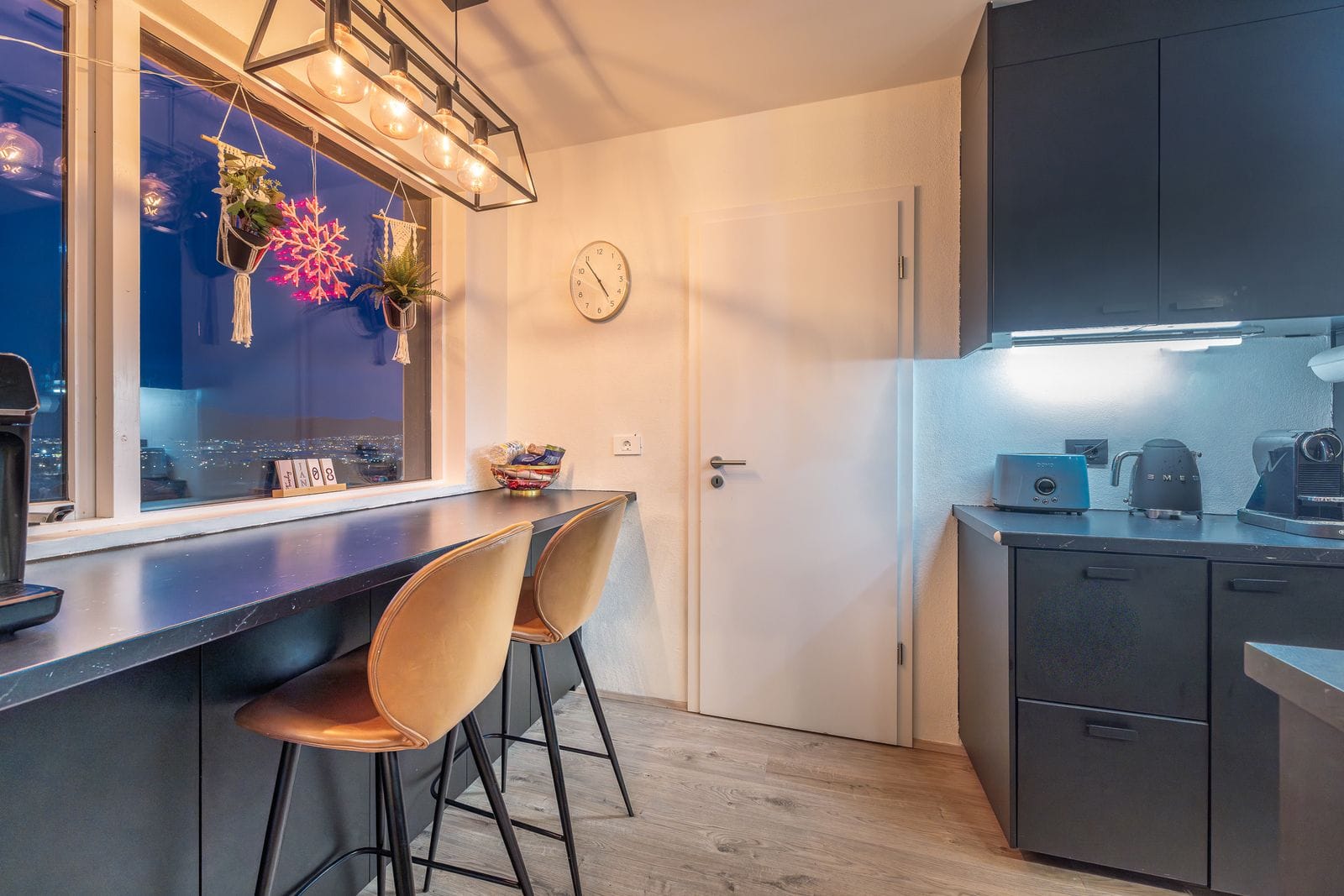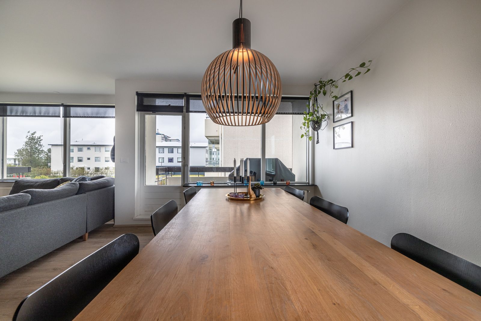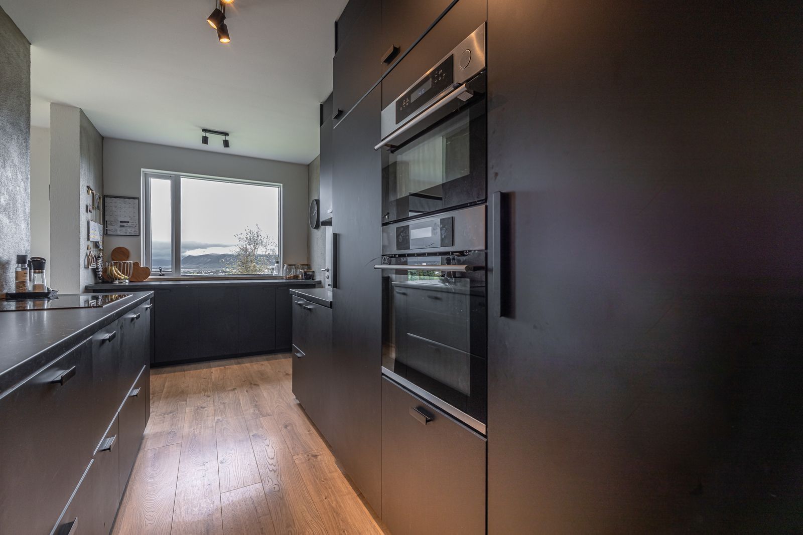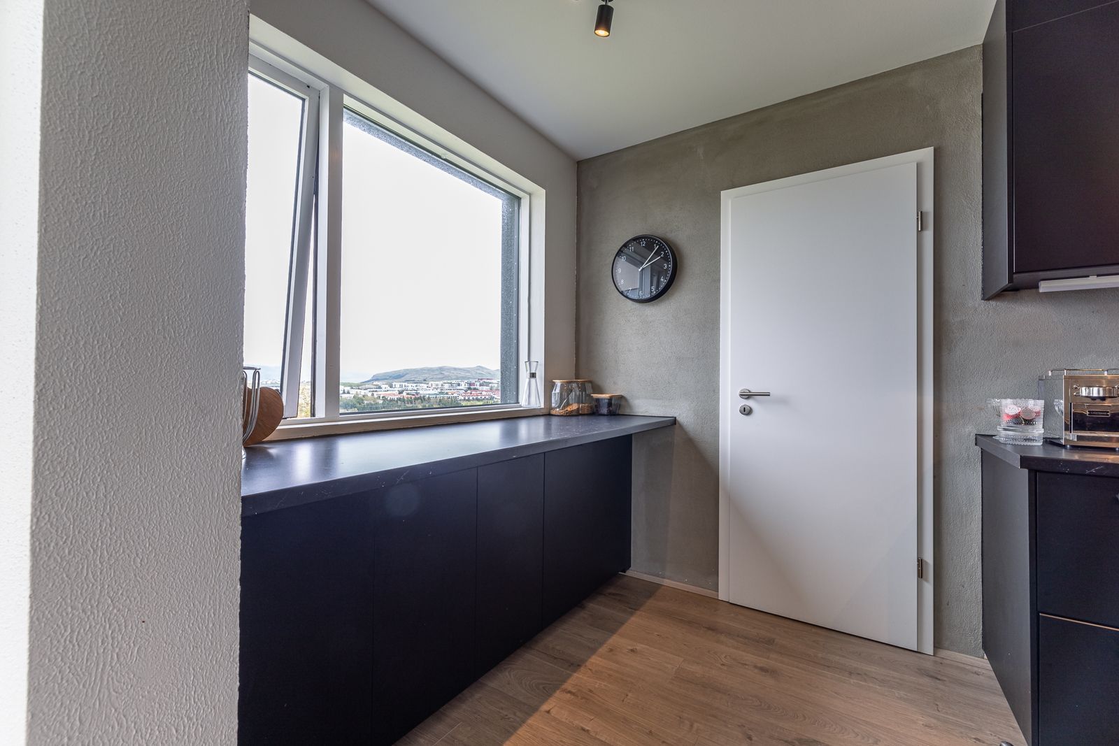 Eldhús: Nýlega endurnýjað, gott skápapláss, ný spanhella og nýr háfur. Borðkrókur við gluggann og mikið útsýni. Hiti í gólfi og sér rafmagnstafla.