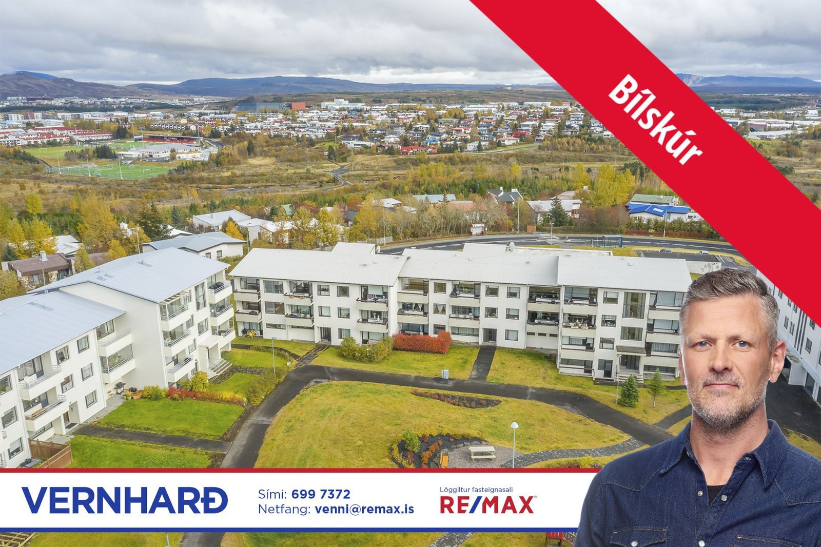 Bílskúrinn er innbyggður í húsið austanvert. Í bílskúr er hiti, vaskur, heitt/kalt vatn og rafdrifin bílskúrshurð með gönguhurð.
