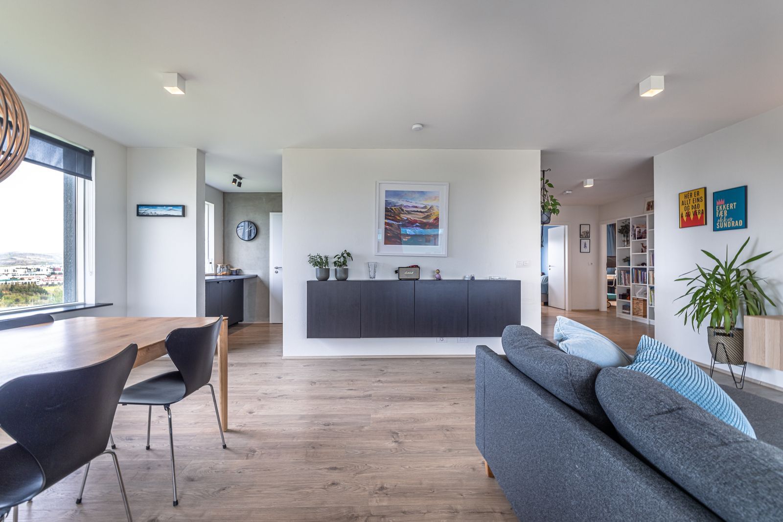 Frábært útsýni er úr íbúðinni. Á seinustu árum er búið er að endurnýja eldhús, baðherbergi, gólfefni, hurðar og alla ofna (nema einn í þvottahúsi), rafmagnstengla og dósir og auka rafmagnstafla var sett í eldhúsið.