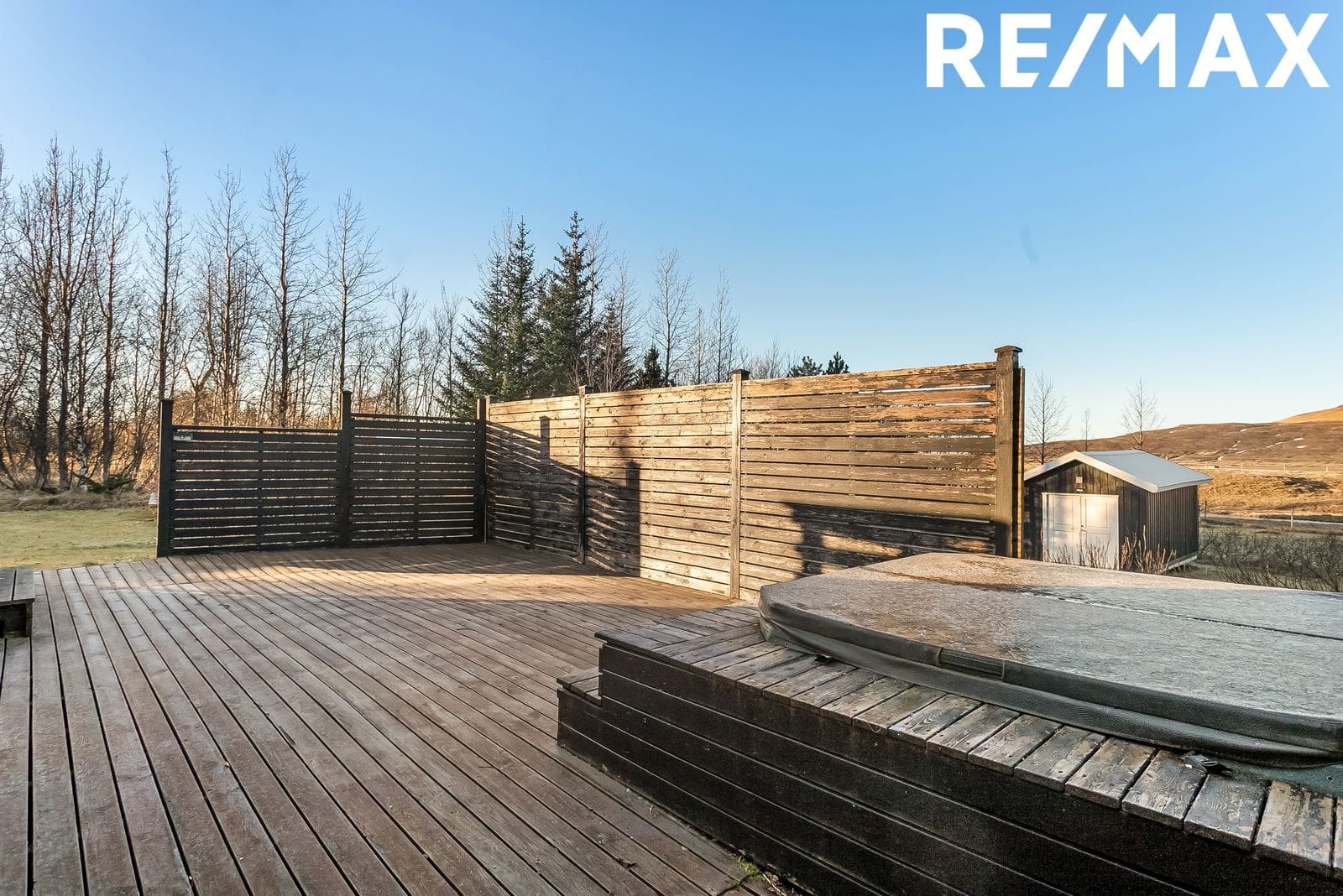 Nánari lýsing: Komið er inn í rúmgóða forstofu með parketi á gólfi. Gott pláss fyrir fataskáp og/eða fatahengi. Svefnherbergin eru tvö og eru rúmgóð með góðum gluggum. Parket á gólfi. Baðherbergið er með góðum sturtuklefa, handlaug með skáp undir og salerni. Opnanlegur gluggi. Eldhúsið er með fallegri dökkri innréttingu með helluborði, bakarofni, innbyggðum ísskáp og uppþvottavél. Viðarborðplata er á eldhúsi. Gott vinnu- og skápapláss. Borðstofa/Stofa er samliggjandi opið rými við eldhús. Mjög bjart og rúmgott. Þaðan er útgengt út á góða verönd. Svefnloft er rúmgott með glugga. Stigi hlið við eldhús er upp á svefnloftið. Veröndin er stór og nær nánast hringinn í kringum húsið. Þvottahús/baðherbergi er einnig bakatil við hús þar sem heiti potturinn er á verönd. Flísar á gólfi, tengi fyrir þvottavél, salerni, handlaug og sturtuklefi. Gott geymslupláss. Gestahús er um 15,6 fm og er skráð sem geymsla. Þar er rafmagnskynding og parket á gólfi. Gámur er á lóðinni nánast falin í gróðri svo fer ekki mikið fyrir honum. Hann er 20 ft og er notuð sem köld geymsla. Lóðin er afar snyrtileg og er með steyptum körfuboltavelli og niðurgröfnu trampólíni svo eitthvað sé nefnt.