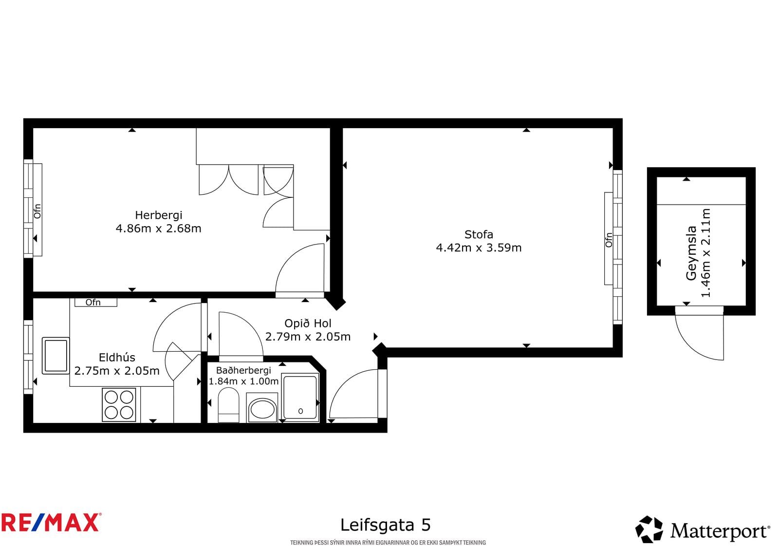 NÚVERANDI SKIPULAG SÉREIGNAR: Hol/gangur, stofa, herbergi, baðherbergi, eldhús, sérgeymsla í kjallara.