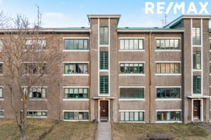 Aðkoma er á jarðhæð sem er mitt á milli 1. hæðar og kjallara. Gengið er upp 6 þrep að íbúðinni sem er á 1. hæð til hægri.