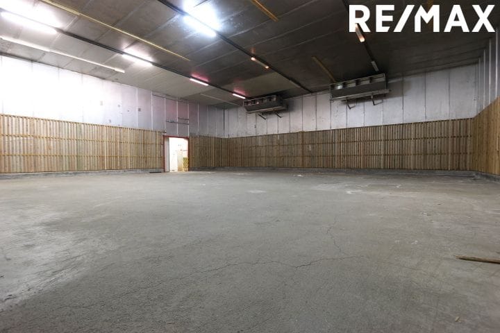 Húsnæðið skiptist í stóran sal sem er skráð sem frystigeymsla, 397,3 fm og fordyri/vélaherbergi, 57,1 fm.