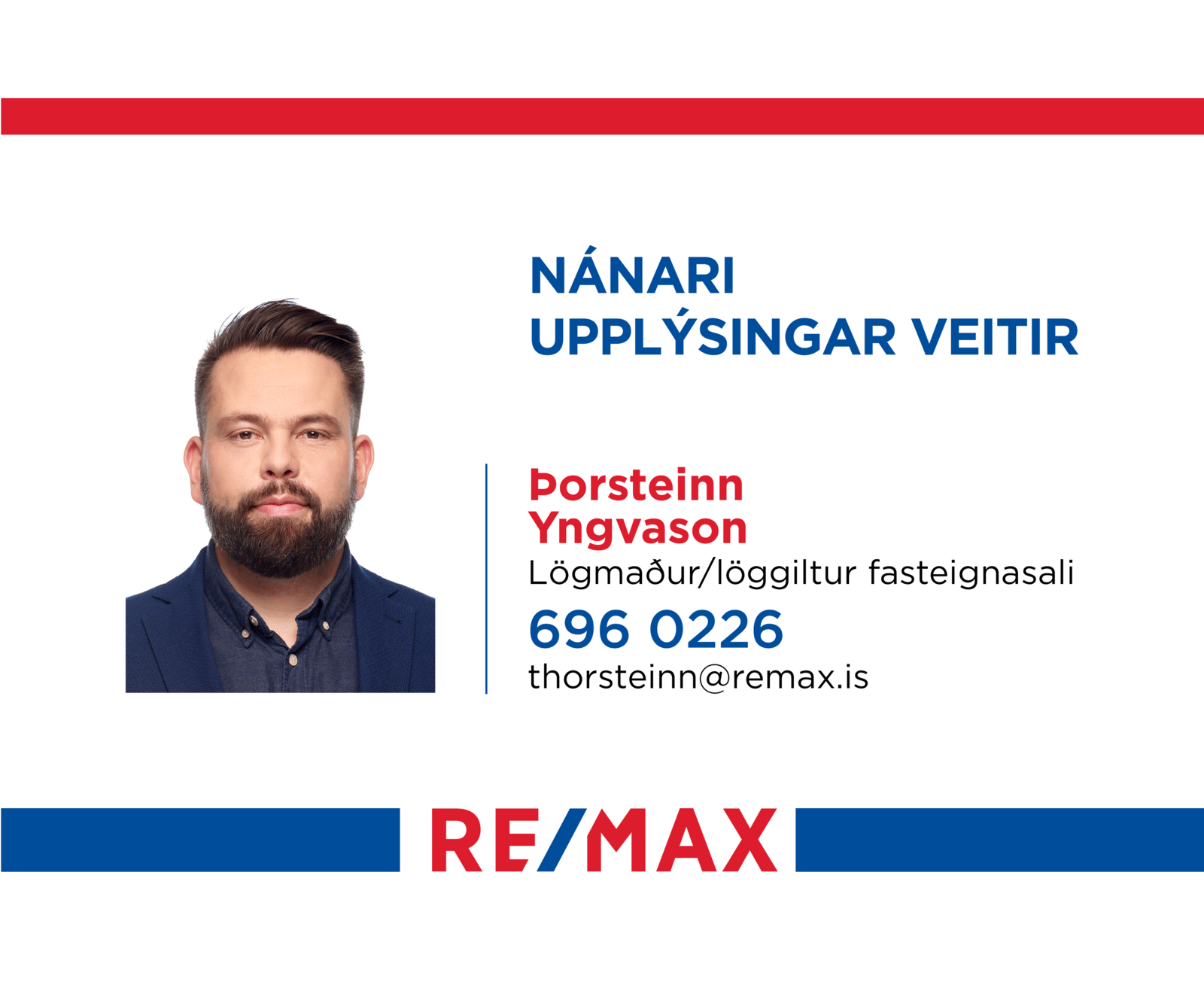 Allar frekari upplýsingar veitir Þorsteinn Yngvason, lögmaður / löggiltur fasteignasali, í síma 696 0226 eða thorsteinn@remax.is