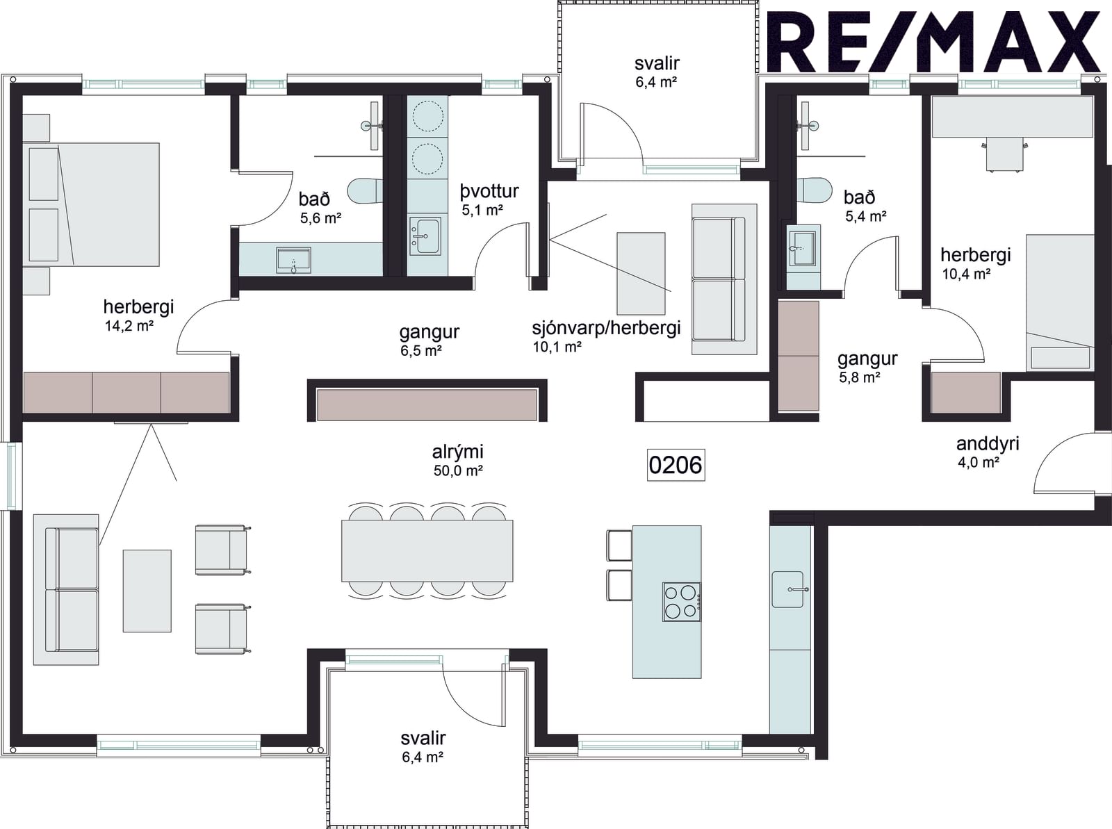 Birt heildarstærð séreignar er 181,4 fm. Íbúðinni fylgir sér stæði í bílakjallara merkt B18.