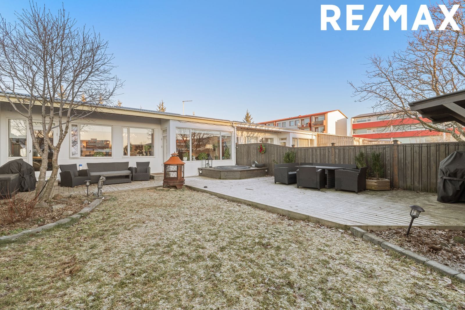 RE/MAX & Bjarný Björg Arnórsdóttir Lgf. kynnir: Vel skipulagt og bjart raðhús á einni hæð, samtals 154,3 fm með bílskúr. Íbúð 127,3 fm og bílskúr 27,0 fm. Suðurverönd með heitum potti. Húsið er teiknað af Kjartani Sveinssyni. Falleg eign sem vert er að skoða.