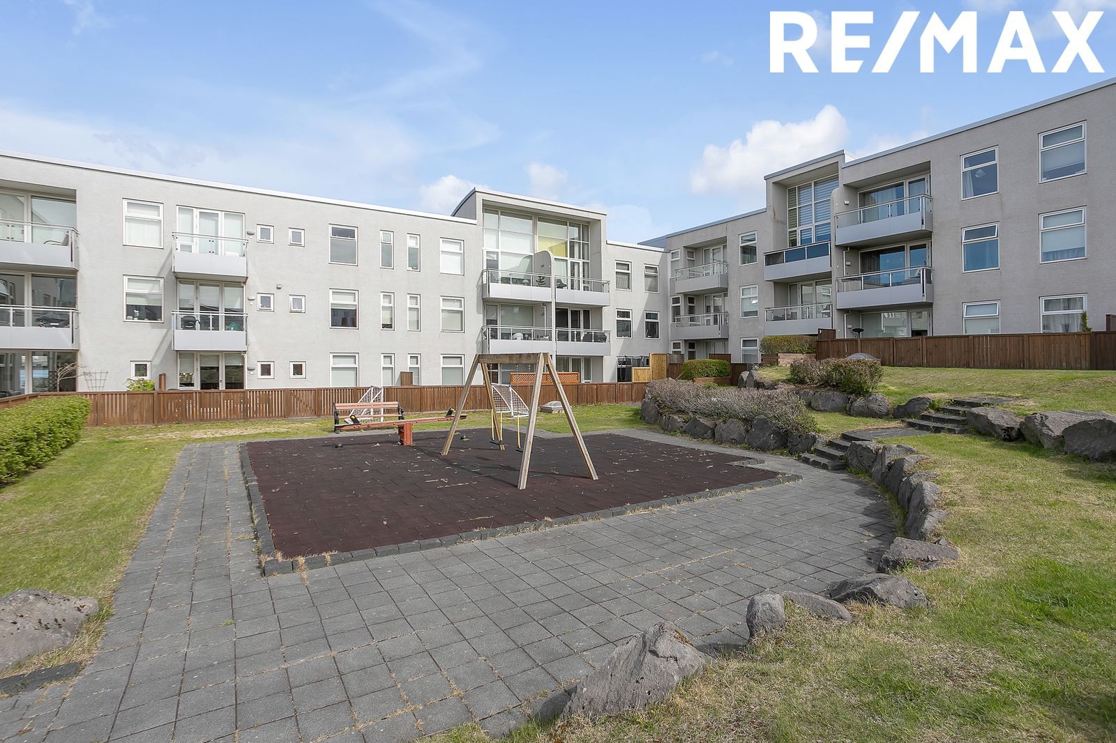 Eignin er staðsett í Sjálandshverfinu og er stutt í alla nauðsynlega þjónustu. Ylströndin, hjóla- og göngustígar og falleg náttúra einkenna svæðið. Góður sameiginlegur garður með gróðri og leiktækjum sunnan við húsið. Húsið er vandað og ber með sér gott viðhald. Byggt árið 2004 af Gunnar og Gylfa.
