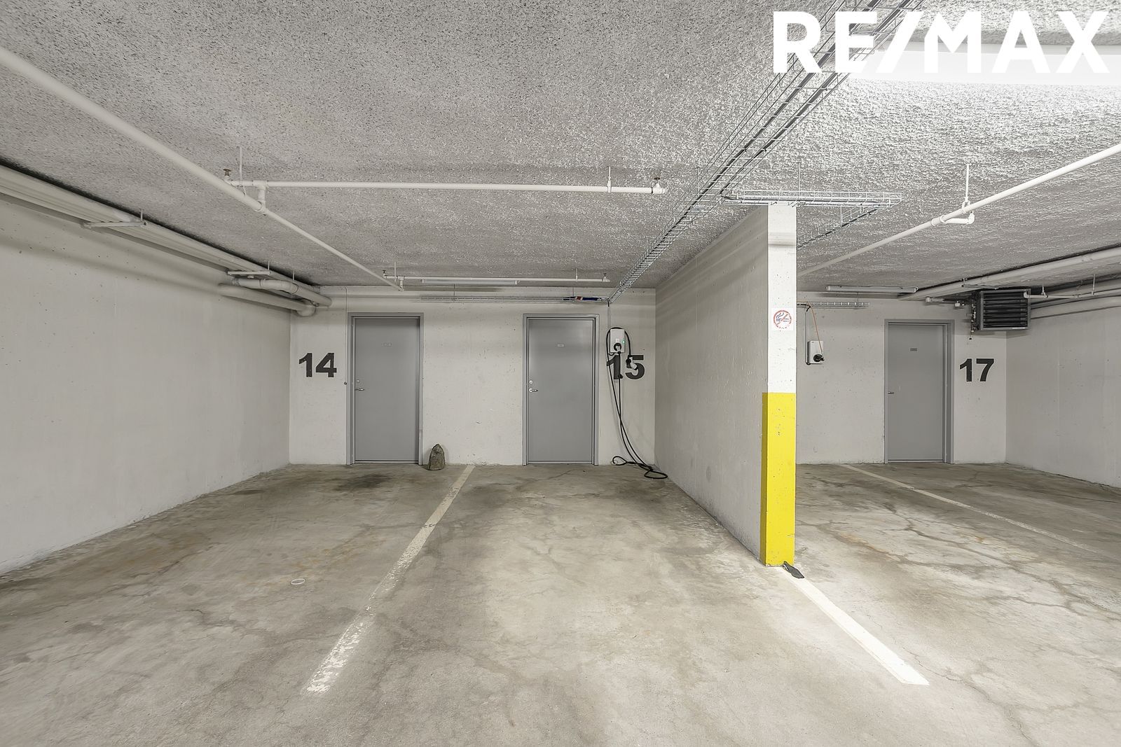 Sérmerkt stæði er í bílageymslu. Sér geymsla íbúðar (7,5 fm.) er fyrir aftan stæðið í bílageymslunni. Auk þess er svo sameiginleg hjóla/vagna og sér dekkjageymsla. Lóð hússins er vel hirt. Stór bakgarður með leiktækjum sem hægt er að ganga út frá af verönd íbúðarinnar.