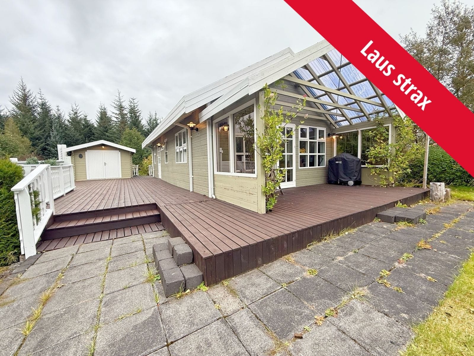 Þorsteinn lgfs, Berglind Hólm lgfs og RE/MAX kynna: Ævintýraland rétt við Selfoss – Fallegt og vel viðhaldið sumarhús á eignarlóð með stórum trjám og miklum gróðri steinsnar frá Selfossi, aðeins um 15 mínútna akstur. Lóðin er einstök með stóru trjám allt i kring sem veitir sérlega gott næði og skjól frá öðrum bústöðum hverfisins. Fyrir um 10 árum var tekin inn hitaveita í bústaðinn og er hann hitaður með vatnsofnum. Einnig er búið að setja forhitara og lokað kerfi á neysluvatnið og þvi upphitað kalt vatn í öllum krönum. Ljósleiðari var tengdur inn í bústaðinn fyrir skömmu. Aðalhúsið er skráð 70 m2 (með auka svefnlofti sirka 12 m2 að gólffleti) með stórri verönd sem snýr til suðurs og vesturs að mestu, hitaveitu pottur er á veröndinni og fallegt hvít grindverk umlykur hana. Á veröndinni er einnig frábært geymsluskúr um 9 m2 upphitaður með hitaveitu. Að auki er á lóðinni gámahús um 30 m2 upphitað hitaveitu, bílskúr um 21 m2, geymsluskúr á steyptum sökkli um 14 m2 og tveir litlir geymsluskúrar um 2 m2 og 4 m2. Samanlagðir heildarfermetrar allra nýtanlegra rýma er því um 160 m2 talsins.