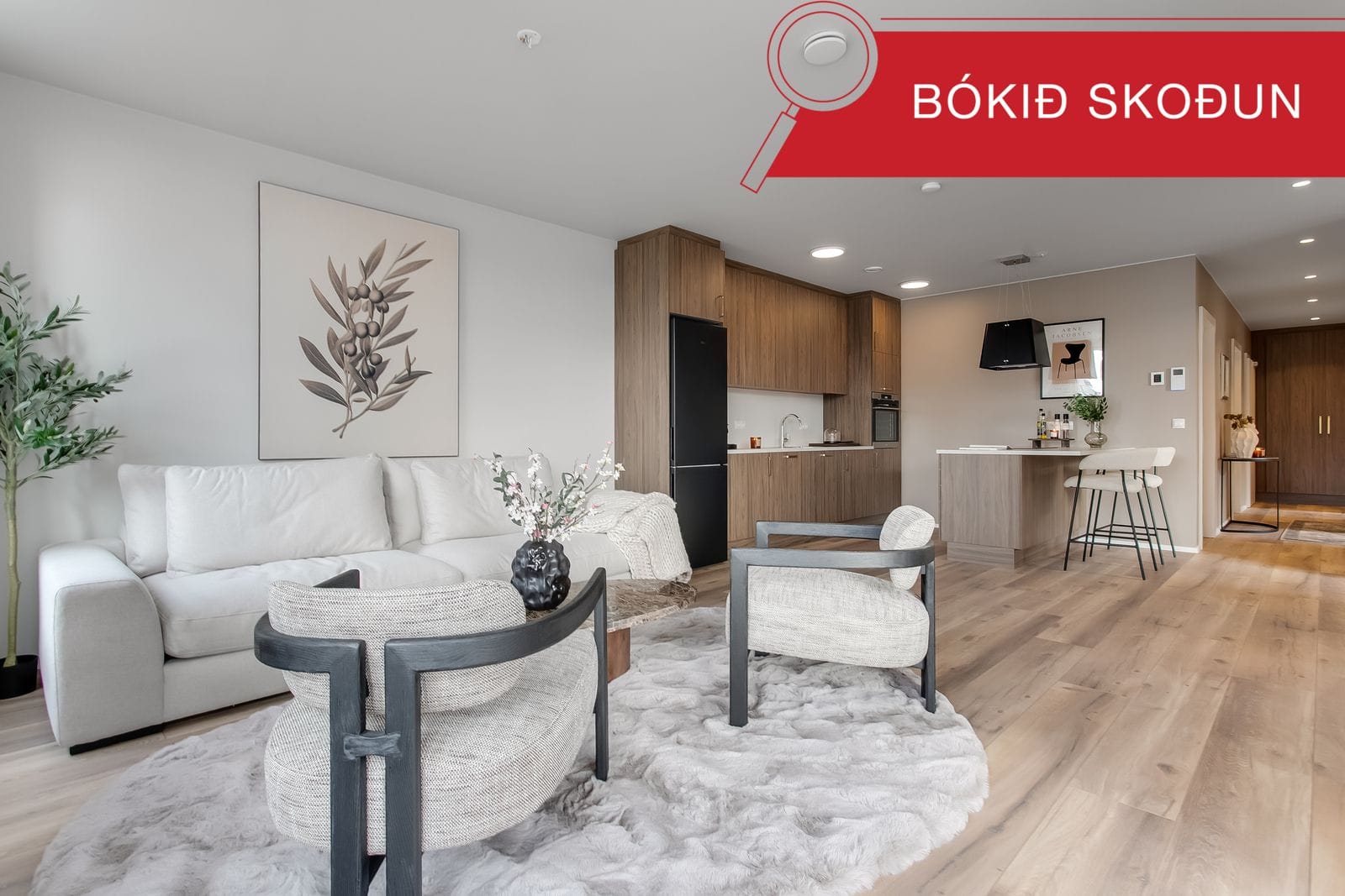 Bókið skoðun hjá Guðrúnu í síma 820-0490 eða með tölvupósti á netfangið gudrun@remax.is eða á Gumma Júl í síma 858-7410 eða með tölvupósti á netfangið gj@remax.is Frekari upplýsingar um eignirnar:Gólf íbúða eru fleytt og tilbúin fyrir endanlegt gólfefni, nema í baðherbergi og í þvottahúsi en þar eru flísar á gólfum. Einnig eru flísar á veggjum baðherbergja, flísar eru frá Parka. Fataskápar í herbergjum og forstofu eru af vandaðri gerð frá Axis. Borðplötur eru í eldhúsi, baði og þvottahúsi þar sem við á og eru frá Axis.