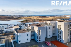 Nánari lýsing: Forstofa, flísalögð með tvöföldum fataskáp. Eldhús með innréttingu frá HTH, spónlögð ljós og hvít sprautulökkuð, plastlögð borðplata, vönduð tæki frá AEG og tengi fyrir uppþvottavél. Stofa / borðstofa, björt og rúmgóð með stórum gluggum og miklu útsýni. Útgengt á 12,8 ferm svalir. Hjónaherbergi með fataskáp. Barnaherbergi I með fataskáp. Barnaherbergi II með fastaskáp. Baðherbergi, flísalagt, hvít innrétting, upphengt salerni og baðkar með sturtu aðstöðu. Þvottahús, flísalagt með skolvask.