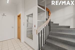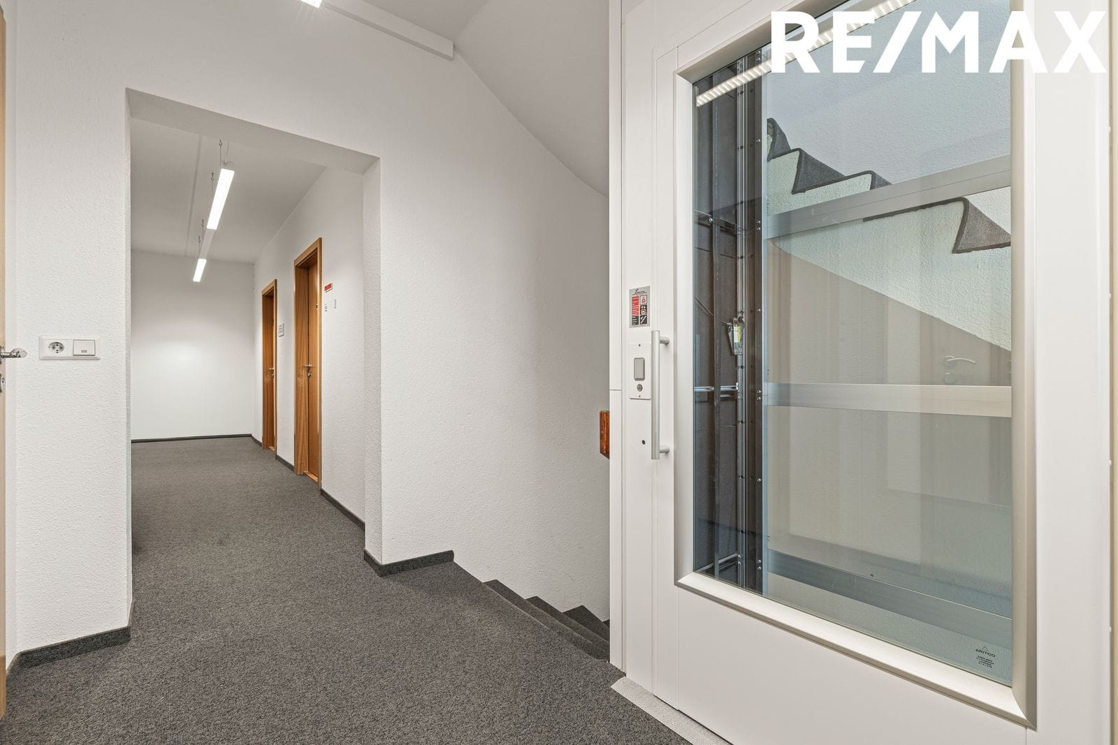 Anddyri er beint inn af gangstétt og bílaplani austan megin við hús. Komið er inn á flísalagt gólf. Lyfta og teppalagðar tröppur eru á milli hæða. Farið er upp eina hæð. Á sameignarsvæði á hæð eru almenningssalerni, ræstirými og fjórar skrifstofur. Inni í skrifstofurýminu sem um ræðir er parketlagt hol sem flæðir inn í hvert skrifstofuherbergi.