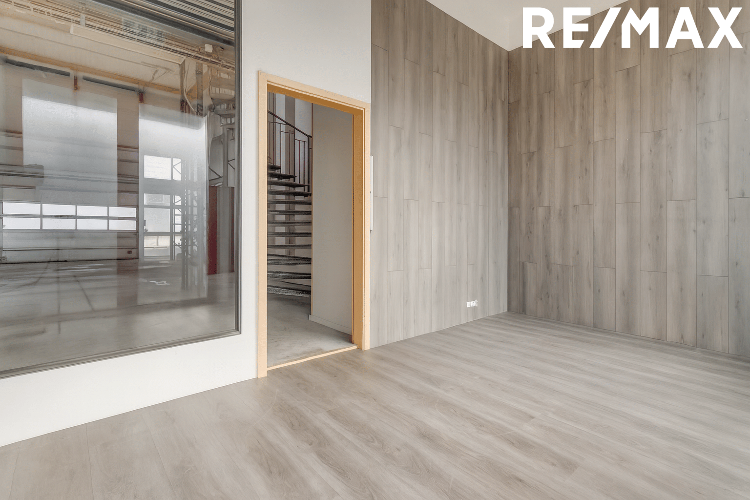 Framhluti húsnæðisins er á tveimur hæðum og er skrifstofurými á efri hæð (87 fm) auk kaffistou og salernis.