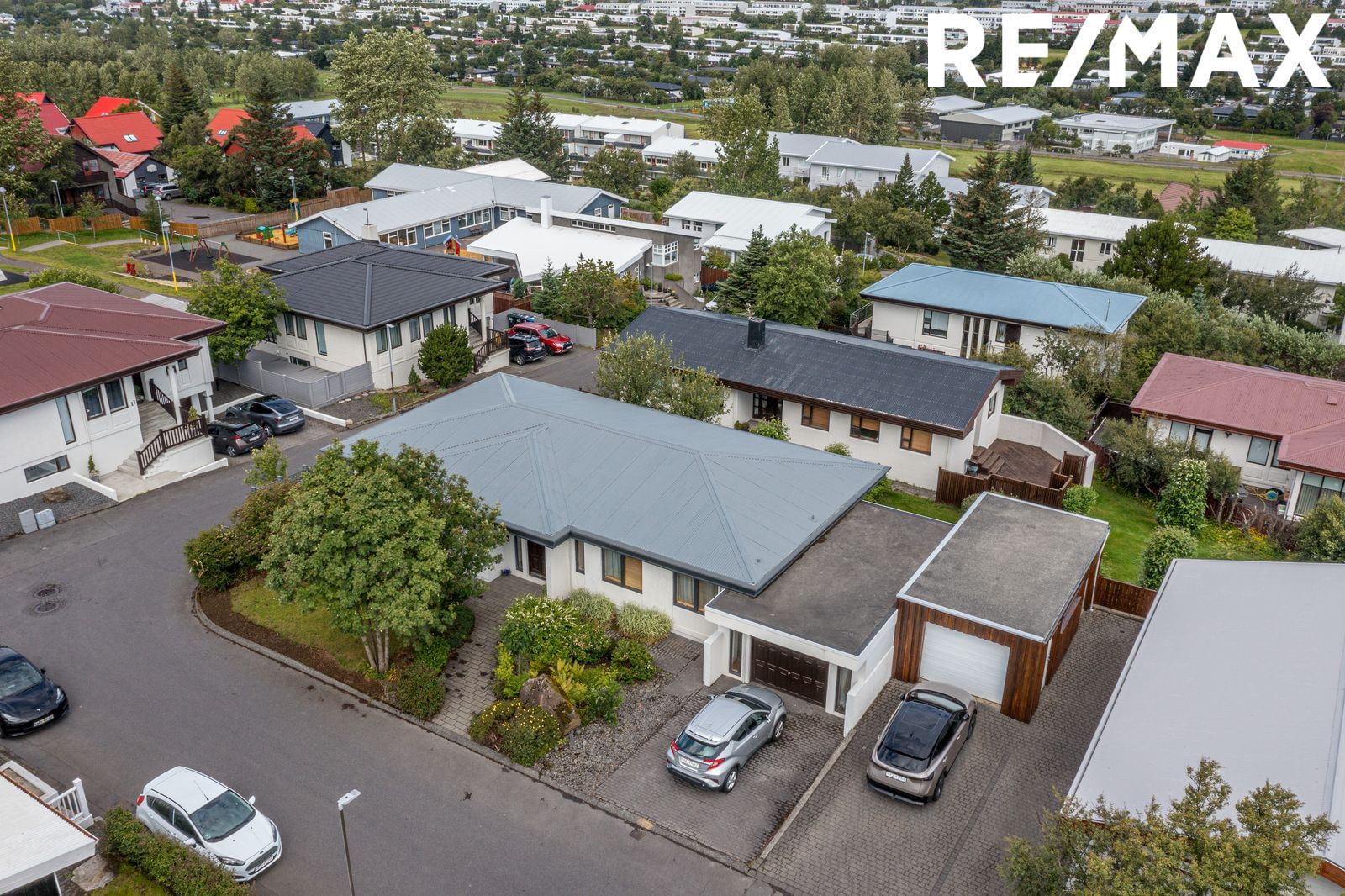 Húsið er byggt árið 1984 og er einbýlishús á tveimur hæðum. Eignin er skráð 348,4 fm samkv. HMS. Efri hæð er skráð 150,7 fm og svo eru tvær íbúðir á neðri hæð sem eru skráðar 45,4 fm og 71,3fm. Sameiginlegt rými á neðri hæð er svo skráð 5,2fm. Bílskúr er skráður 37,9 fm og geymsla undir bílskúr er skráð 37,9 en það rými er óútgrafið og því ekki notað í dag en hægt að grafa það út og nýta.