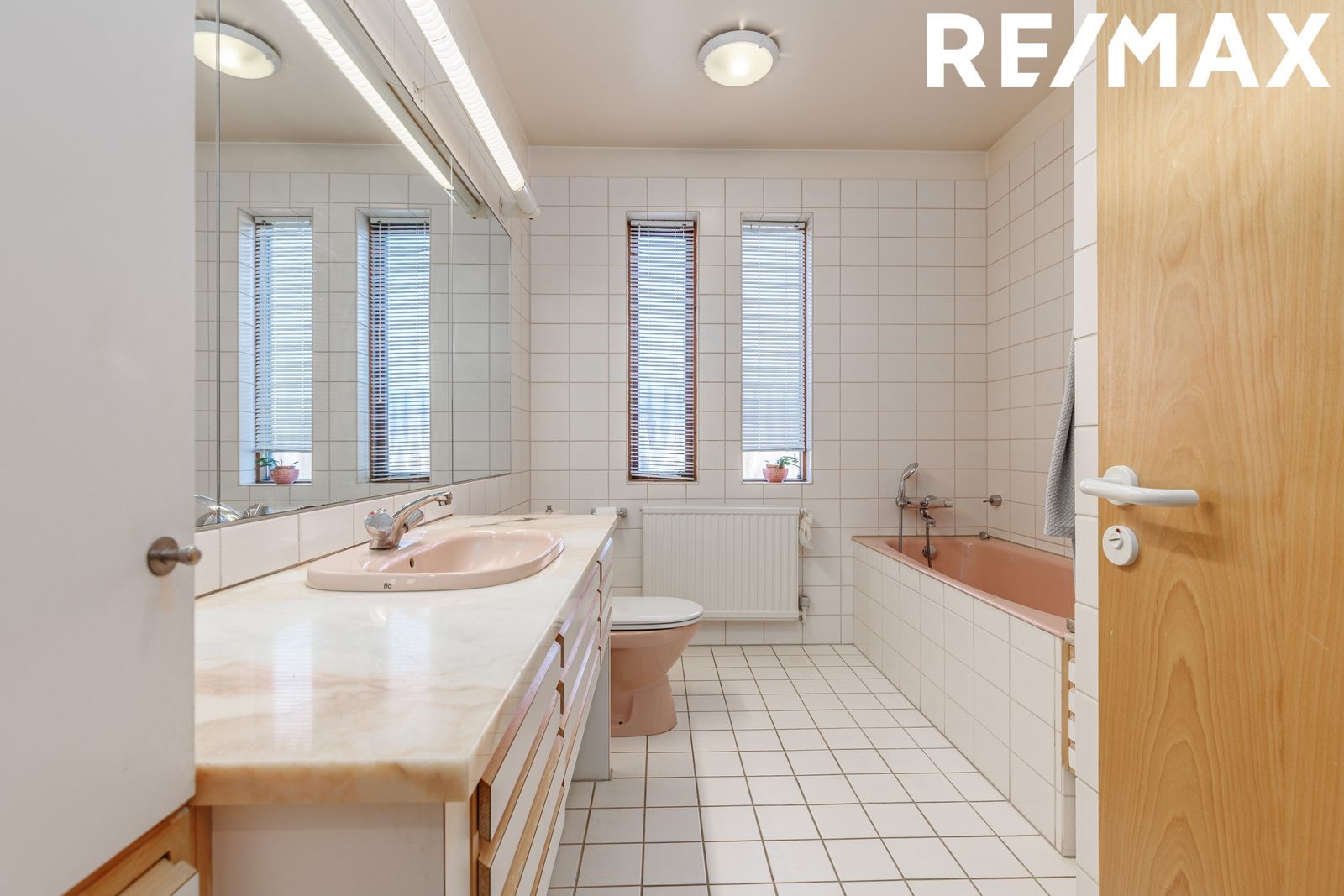 Baðherbergi: Flísalagt í hólf og gólf. Baðkar og sturtuklefi. Innrétting með handlaug.