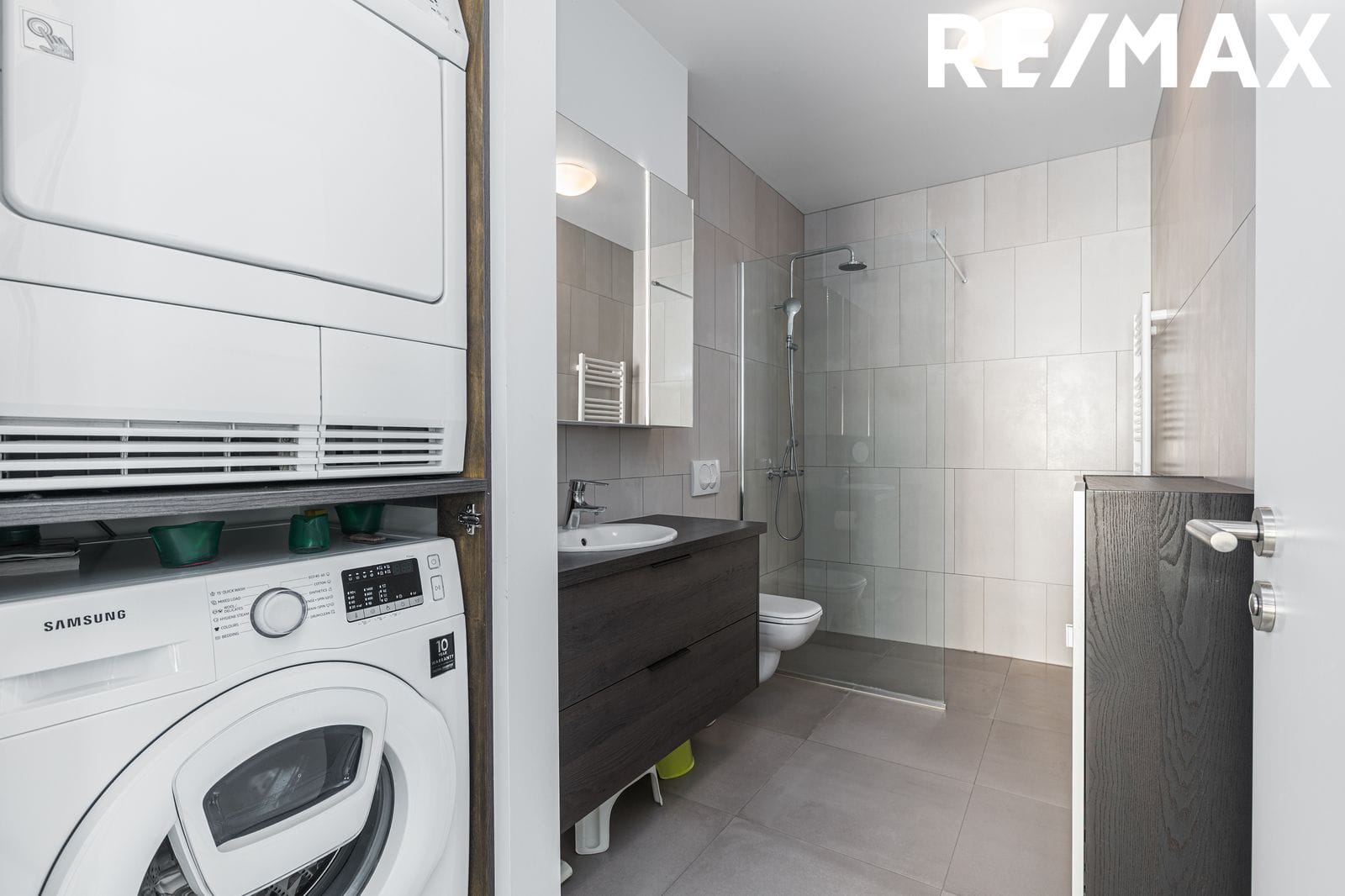 Baðherbergi: Flísalagt í hólf og gólf. Góður sturtuklefi með glerþili. Upphengt salerni. Innrétting með handlaug. Handklæðaofn. Þvottavél og þurrkari eru staðsett í baðherbergi.