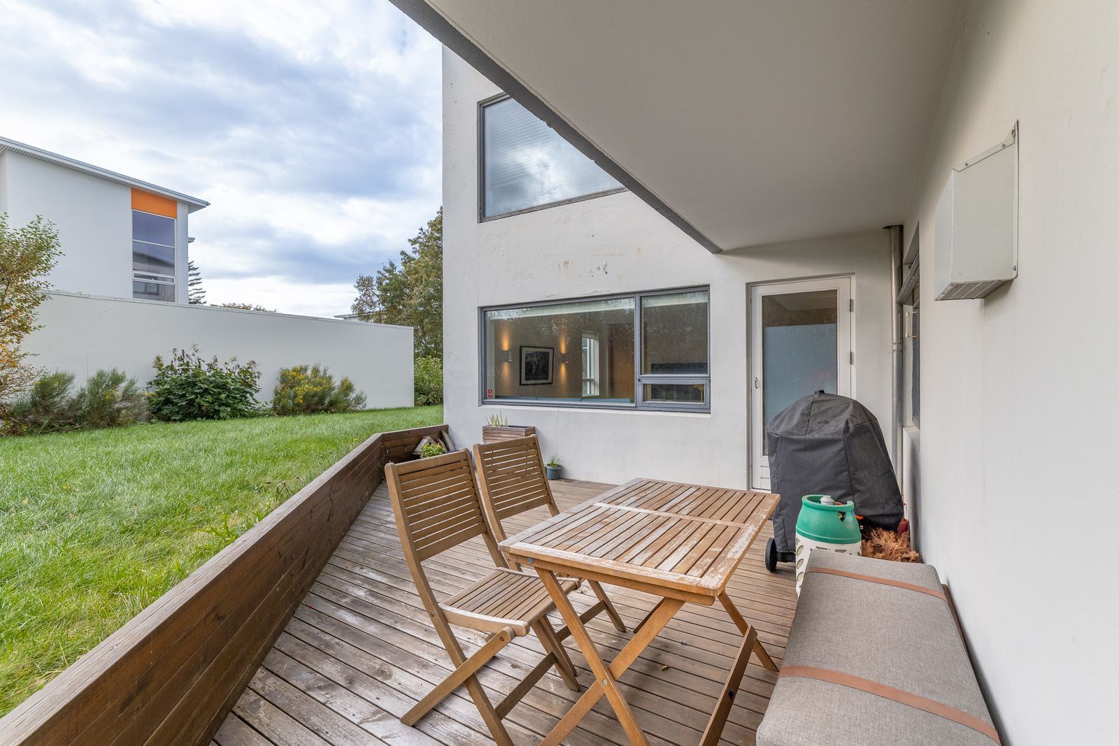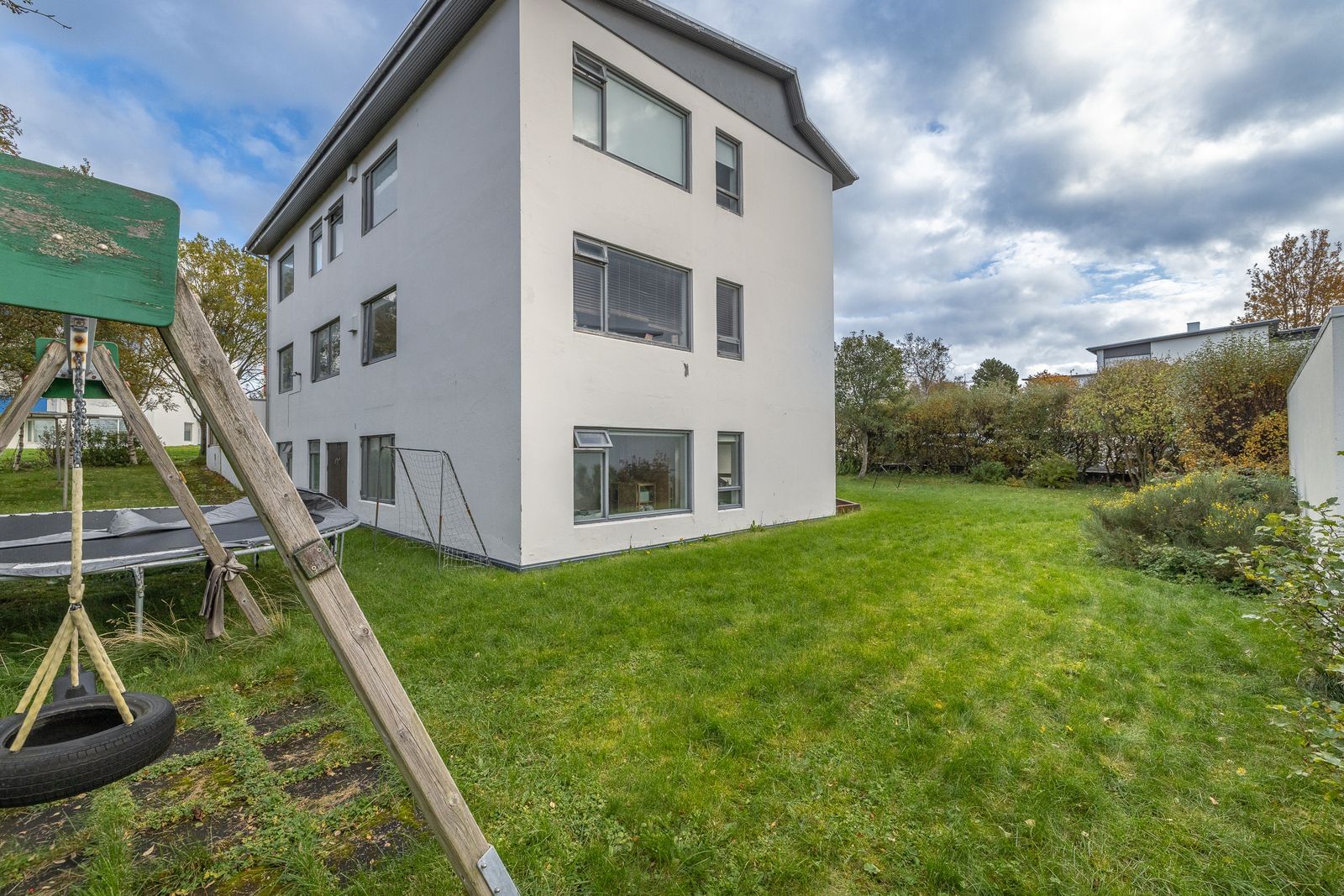 Vernharð Þorleifsson og Magga Gísladóttir löggiltir fasteignasalar kynna þriggja herbergja íbúð á jarðhæð efst í botnlanga við Safamýri 63. Eignin skiptist í forstofu, stofu, tvö svefnherbergi, eldhús, baðherbergi, fataherbergi/geymslu og sólpall.
