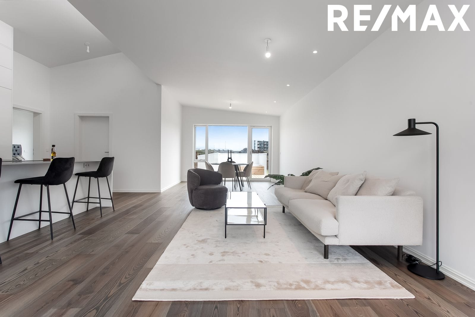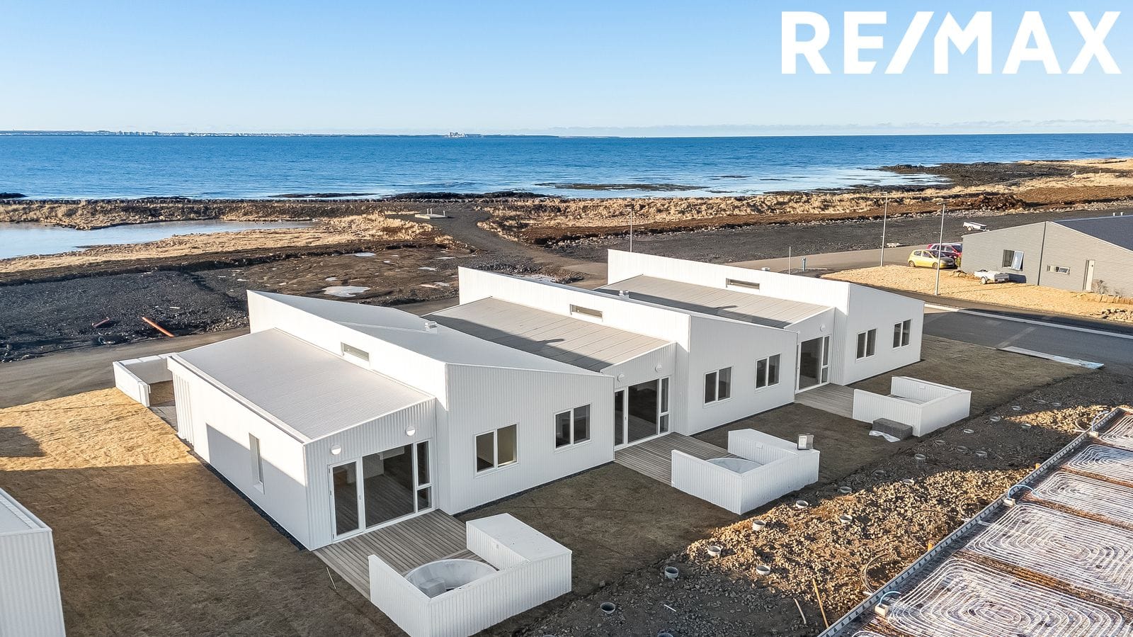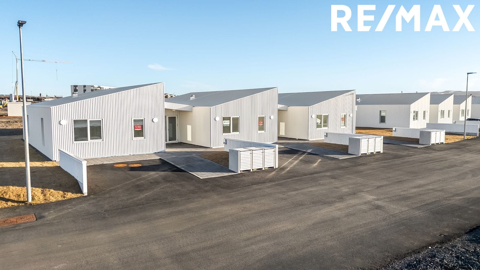 Nánari lýsing eignar: Forstofa: Er með flísum á gólfum og rúmgóðum fataskápum. Stofa og borðstofa er í opnu alrými með eldhúsi, rúmgóð stofa með útgengi á sólpall sem klæddur er með fallegu lerki, búið er að koma fyrir heitum pott, lofthæð innan eignarinnar á hæsta punkt eru um fjórir metrar og setur það mikinn svip á stofuna. Innfelld lýsing þar sem á við. Eldhús: er opið við stofu. Eldhúsinnrétting er hvít melamine með ljósri Quartz borðplötu. Með hverri íbúð fylgir span helluborð með gufugleypi, bakarofn, örbylguofn, innbyggð uppþvottavél og ísskápur með frysti. Svefnherbergi eru fjögur talsins þeim fylgja fataskápar í sama lit og efni og er á eldhúsinnréttingu. Parket á gólfum. Baðherbergi: Er flísalagt í hólf og gólf með 60x60 flísum, upphengt salerni, sturtuklefi og innrétting við vask með ljúflokun á skúffum, tengi fyrir þvottavél og þurrkara. Þvottahús / Geymsla er með flísum á gólfi, innrétting með tengi fyrir þvottavél og þurrkara.