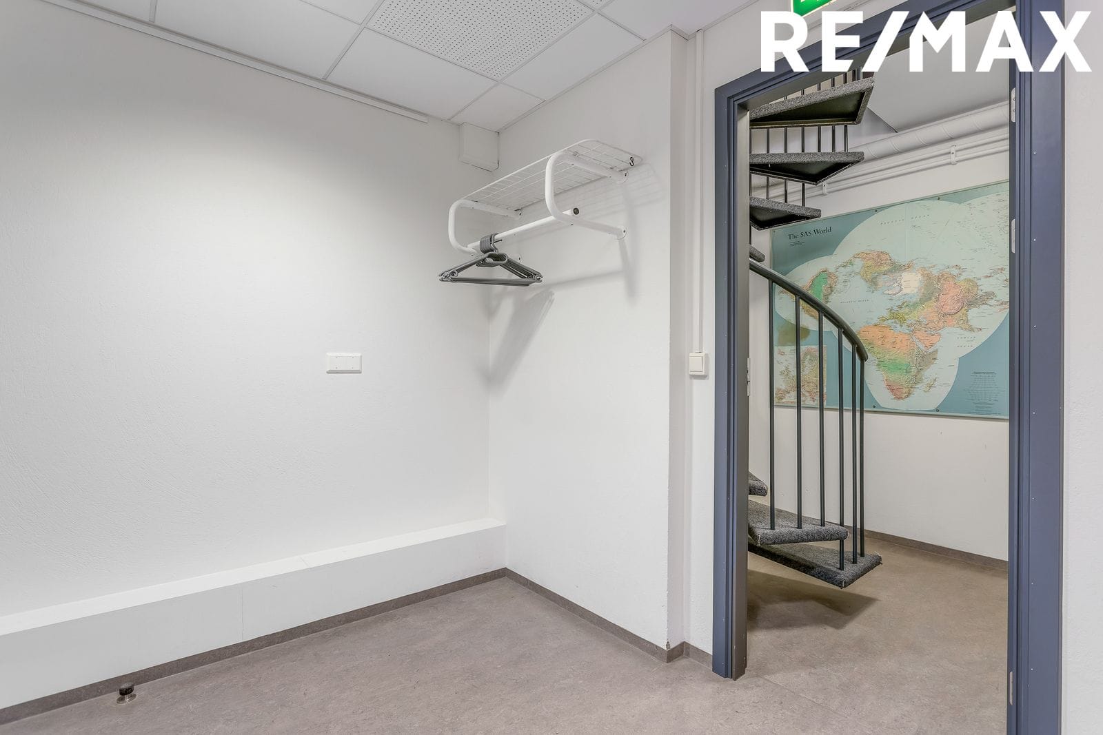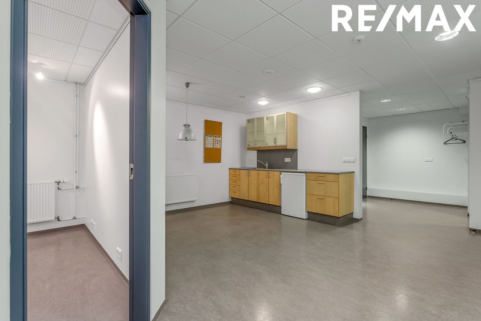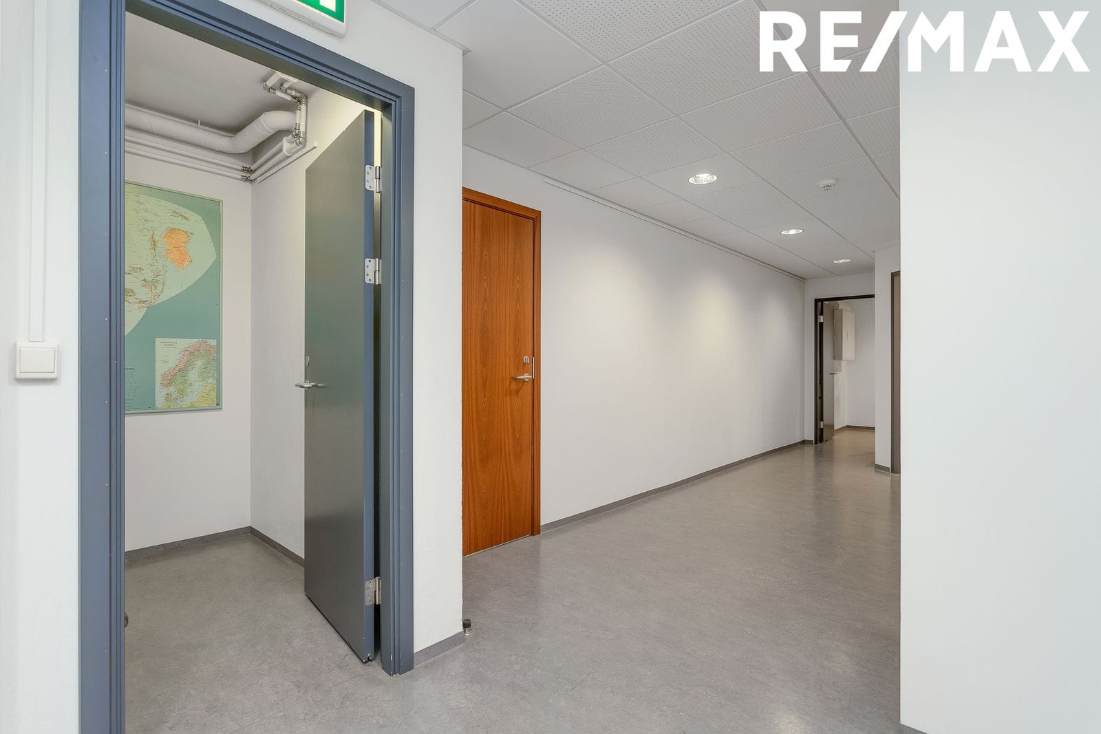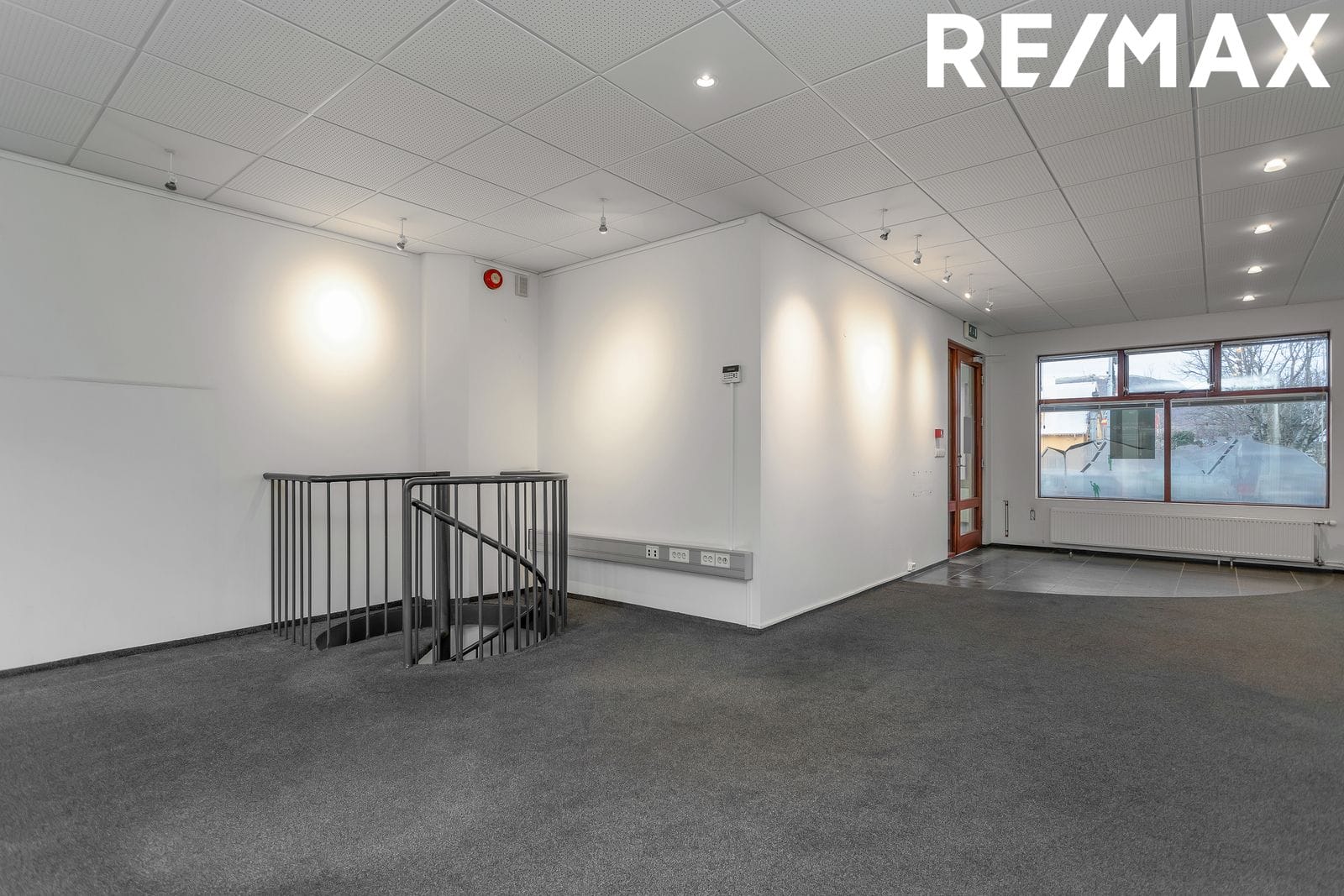 Hæðin er 132,3 fm þar eru tvær rúmgóðar skrifstofur auk opins afgreiðslurýmis og bakinngangs / Möguleiki að útbúa fleiri skrifstofur