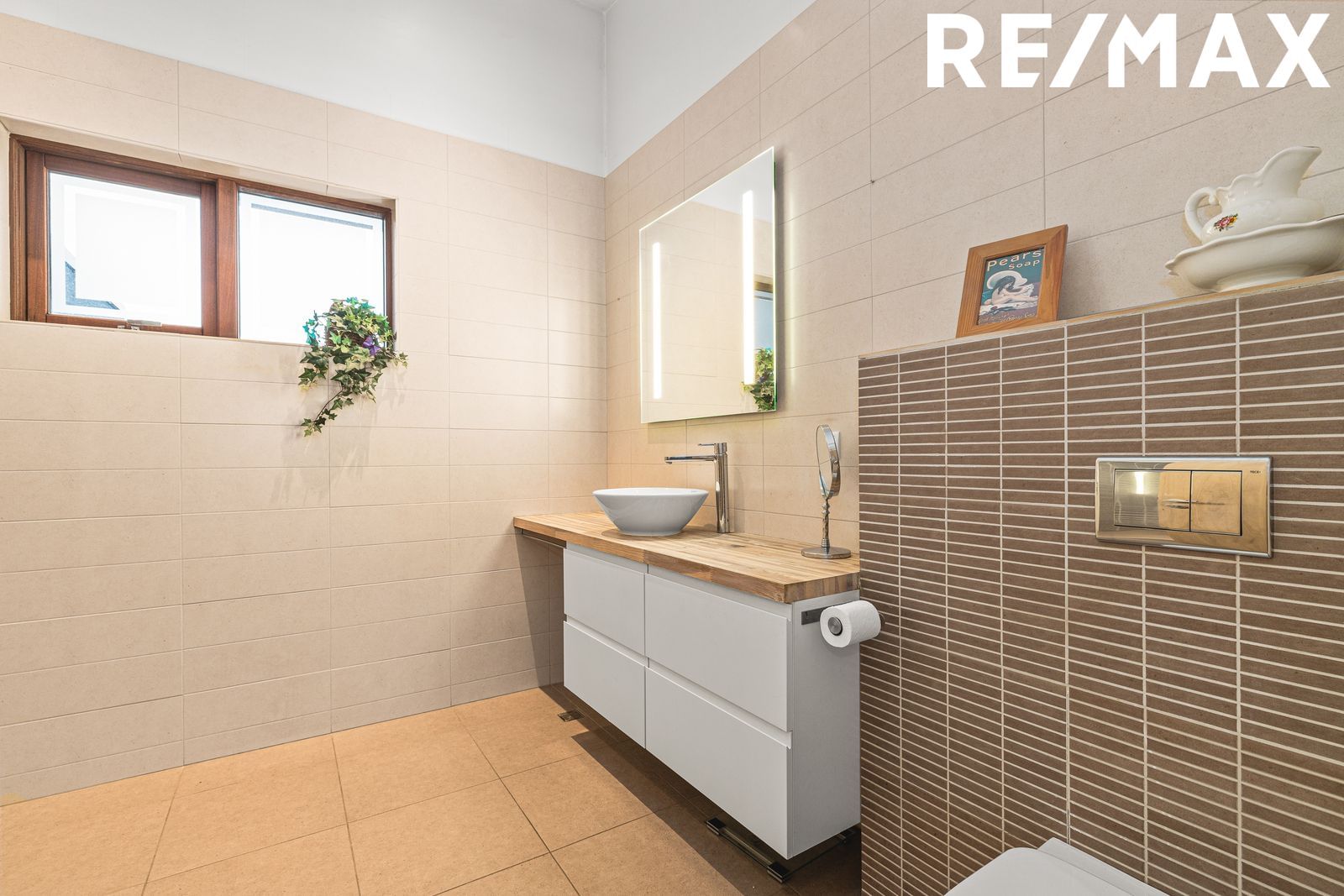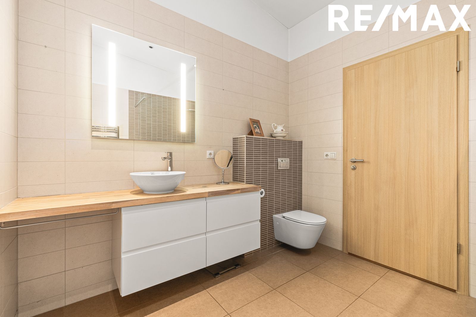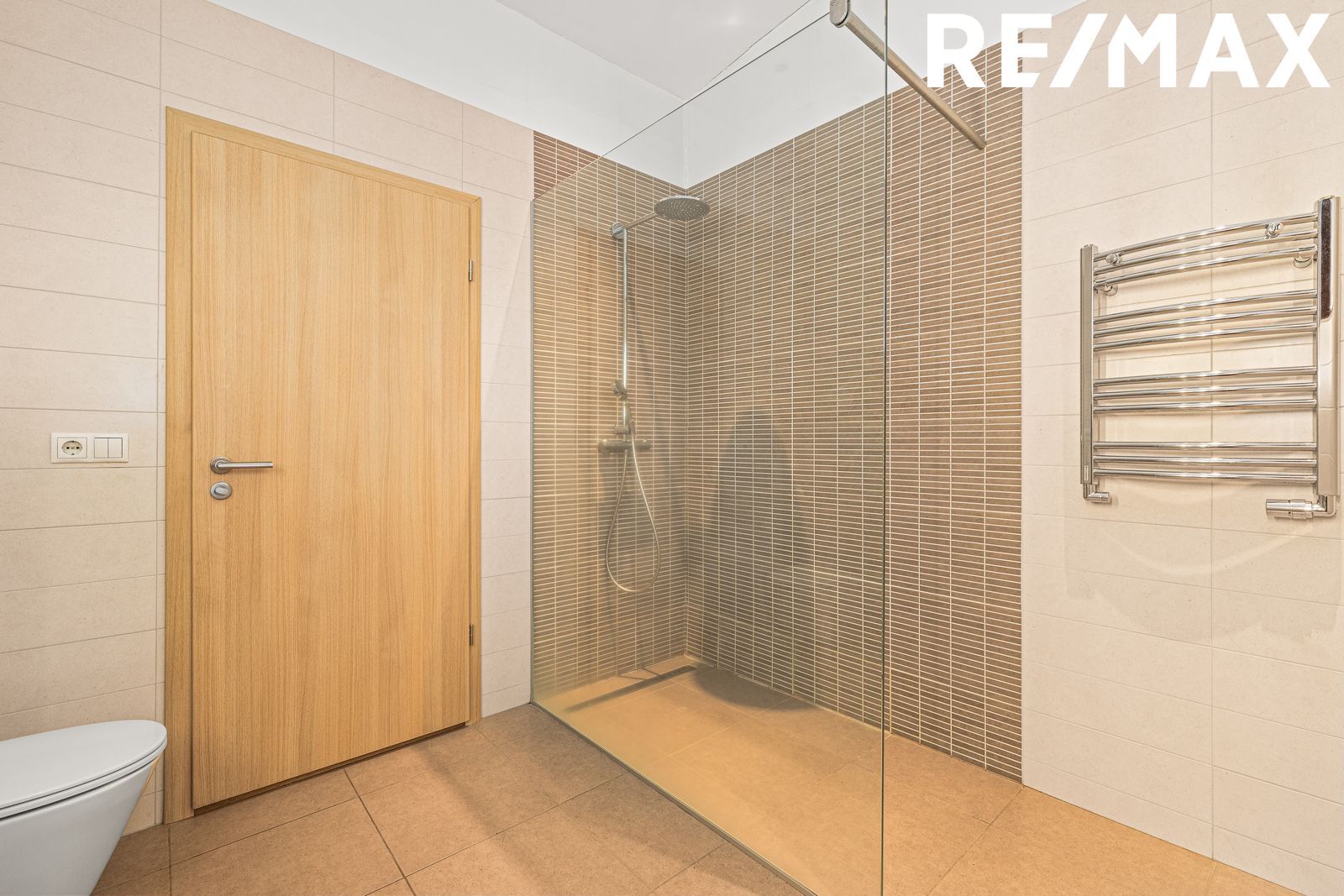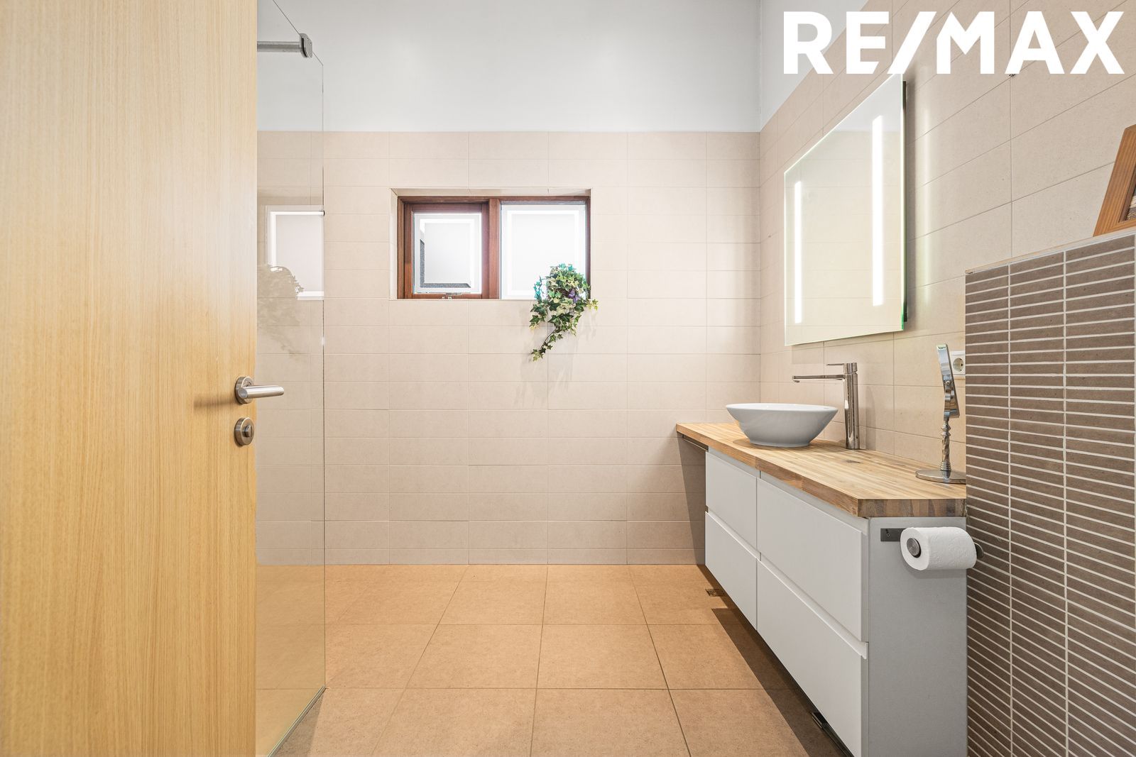 Baðherbergi: Baðherbergið er flísalagt með upphengdu salerni, skúffum undir vaski sem stendur ofan á límtrésplötu. Rúmgóð þreplaus sturta er með gler skilrúmi. Gluggi með opnalegu fagi.