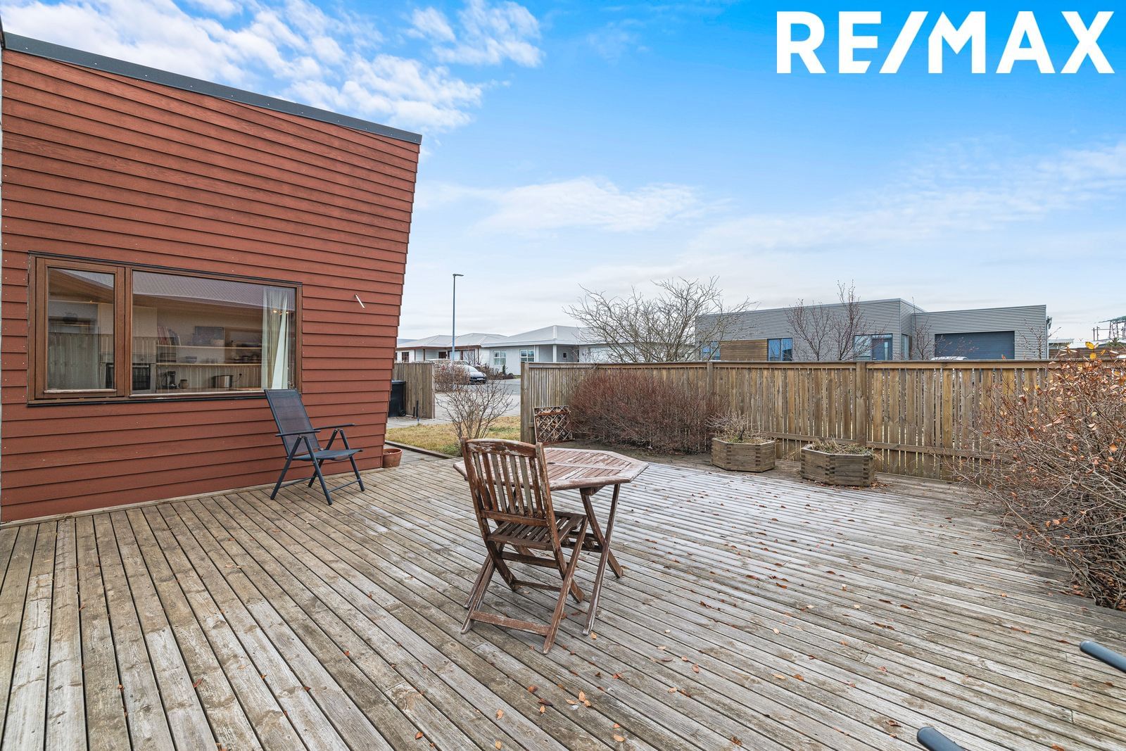Eignin samanstendur af: Forstofu, 2 svefnherbergjum (möguleiki á þriðja), eldhúsi, stofu/borðstofu, baðherbergi, þvottahúsi ásamt geymslu. Innangengt er í bílskúr. Hiti í gólfum.