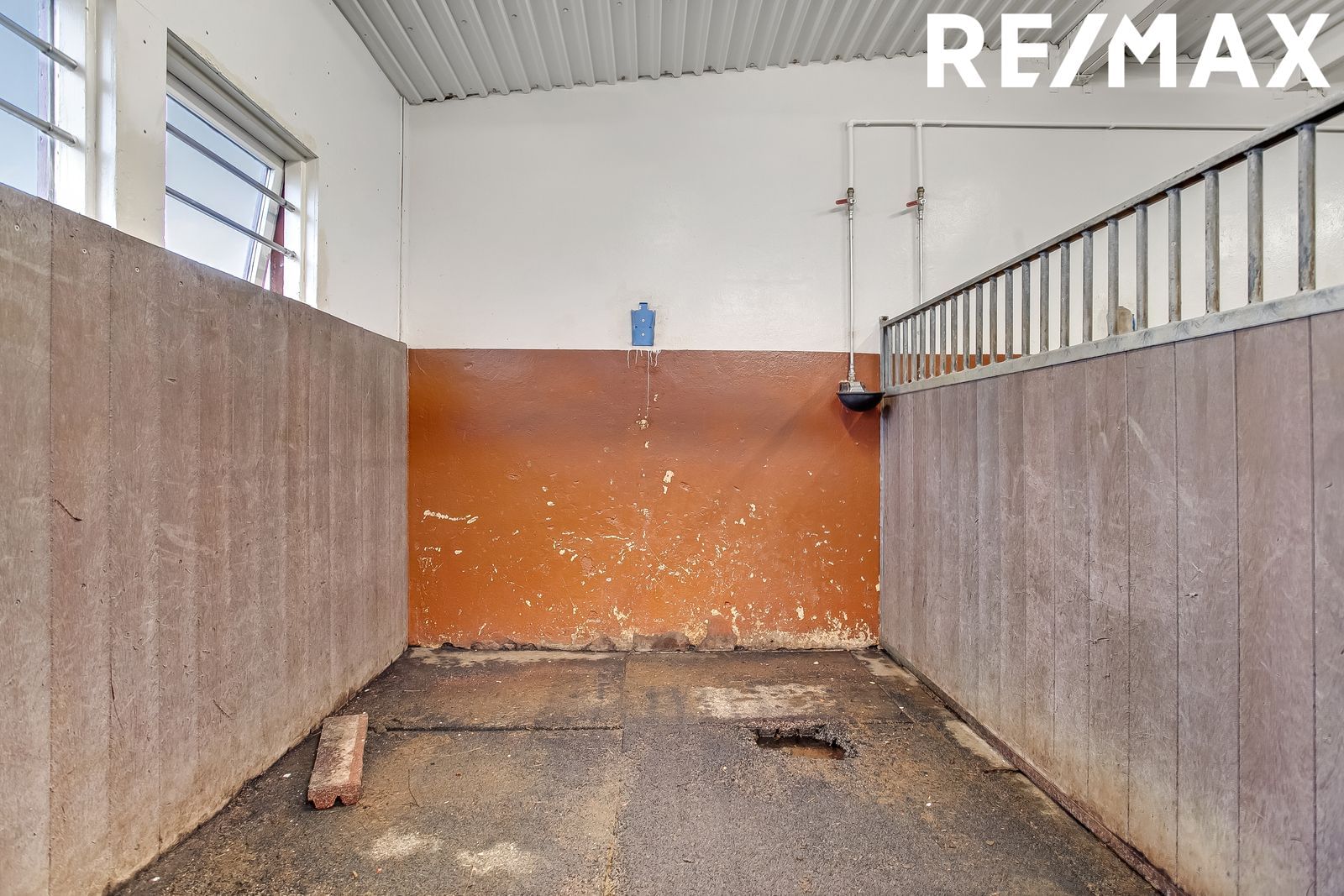 Stíur: 4 rúmgóðar stíur eru með járn ramma og fösuðu plasti í milligerðum og framhliðum. Stíurnar eru hugsaðar sem safnstíur. Skolunarstútar eru undir mottum. Mottur þarfnast endurnýjunar.
