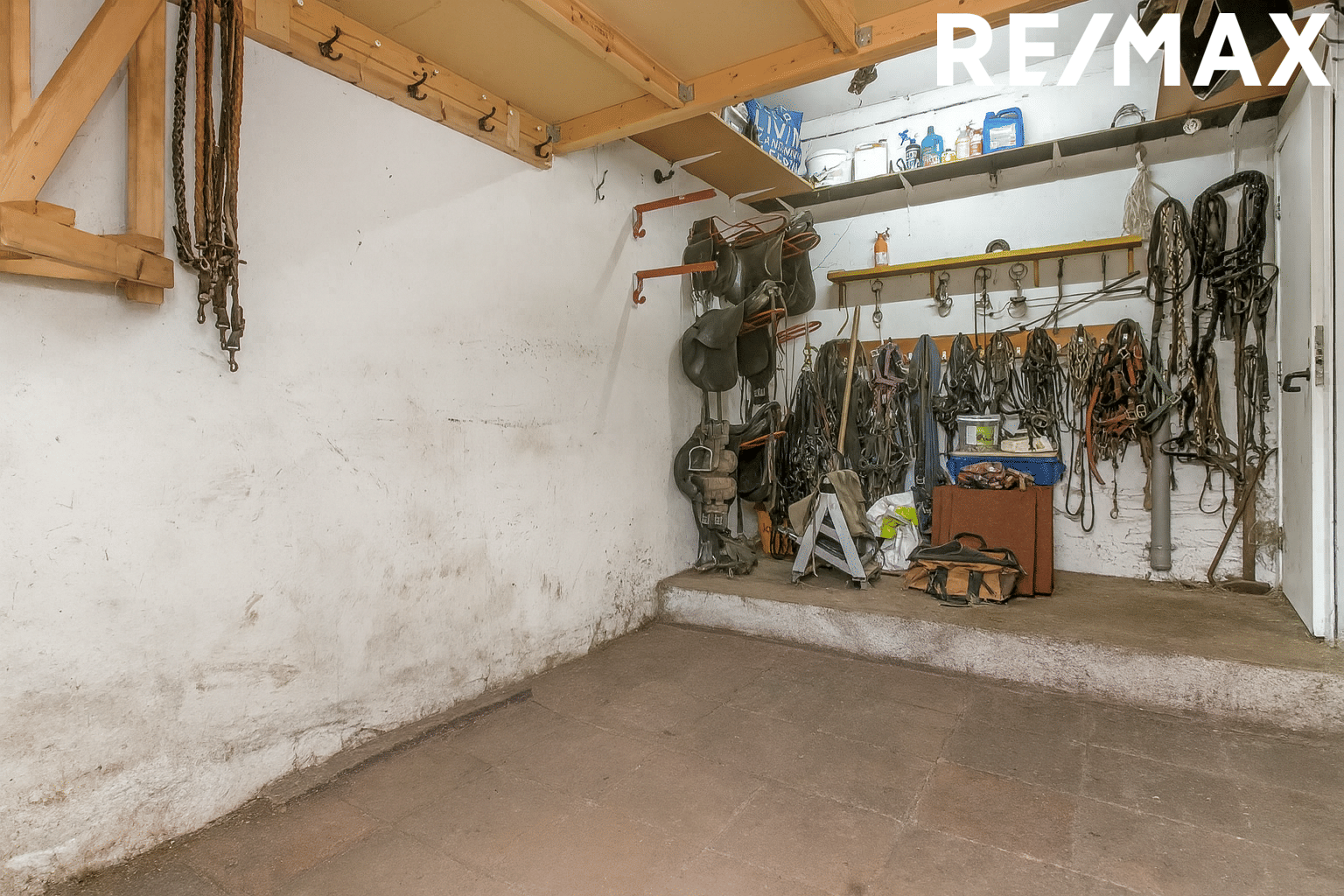Hlaða/Hnakkageymsla: Hnakkageymsla og hlaða eru í sama rými og er það mjög rúmgott rými.