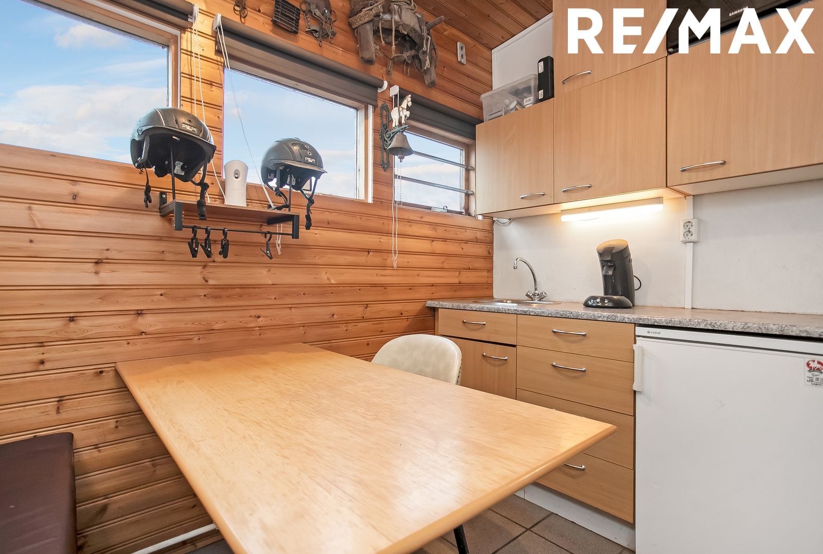 Kaffistofa: Kaffistofa er snyrtileg og með góðri innréttingu. Gluggi í kaffistofu er í átt að gerði.