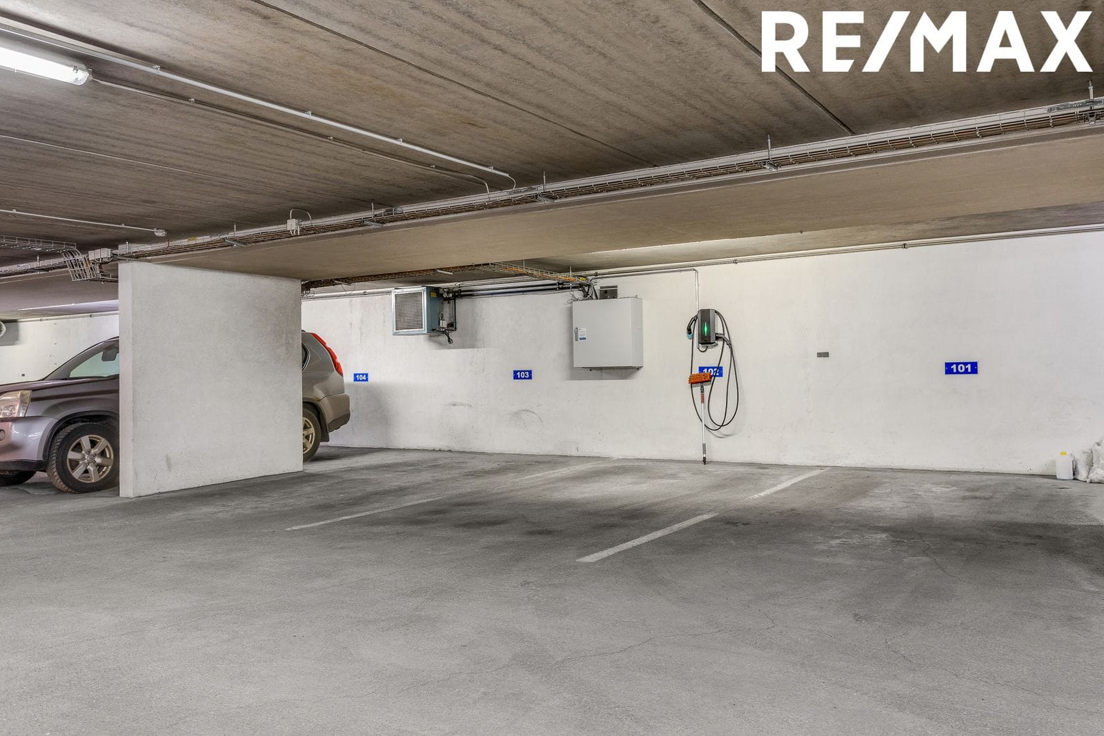 Bílastæði er í lokaðri og upphitaðri bílageymslu. Búið er að setja upp hleðslustöð.