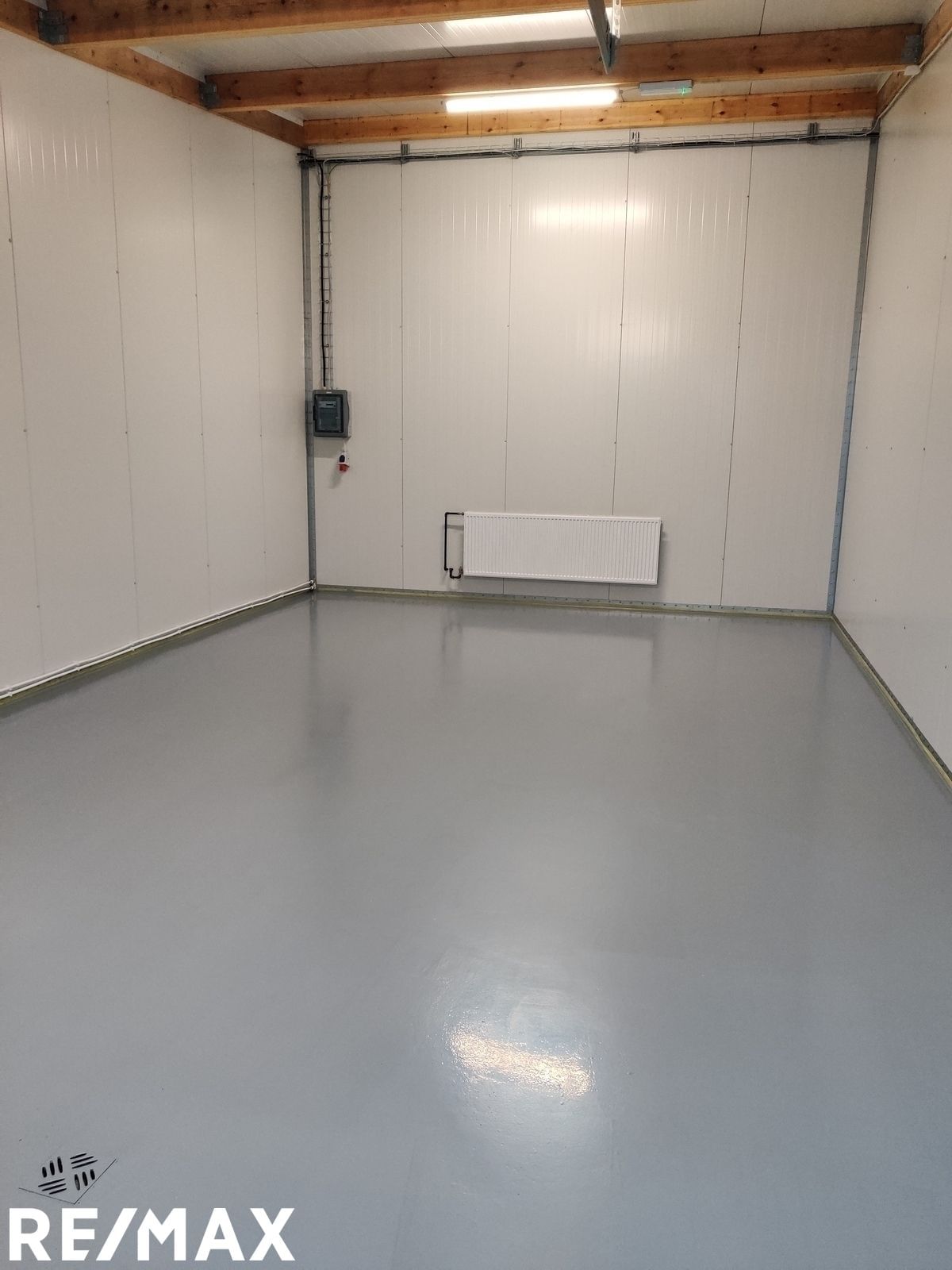 Skúrinn er með vélslípuðu gólfi og niðurfalli, vaskur með heitu og köldu vatni, lýsing í lofti, ofn til upphitunar, rafmagnstafla með 3ja fasa rafmagni, einn 3ja fasa rafmagnstengill við rafmagnstöflu, rafmagnstengill í lofti fyrir hurðaopnara, ljósarofi og rafmagnstengill nálægt hurð. Bílskúrshurð breidd 250 cm., hæð 259 cm, inngönguhurð við hlið bílskúrshurðar með opnanlegum glugga fyrir ofan hurðina.