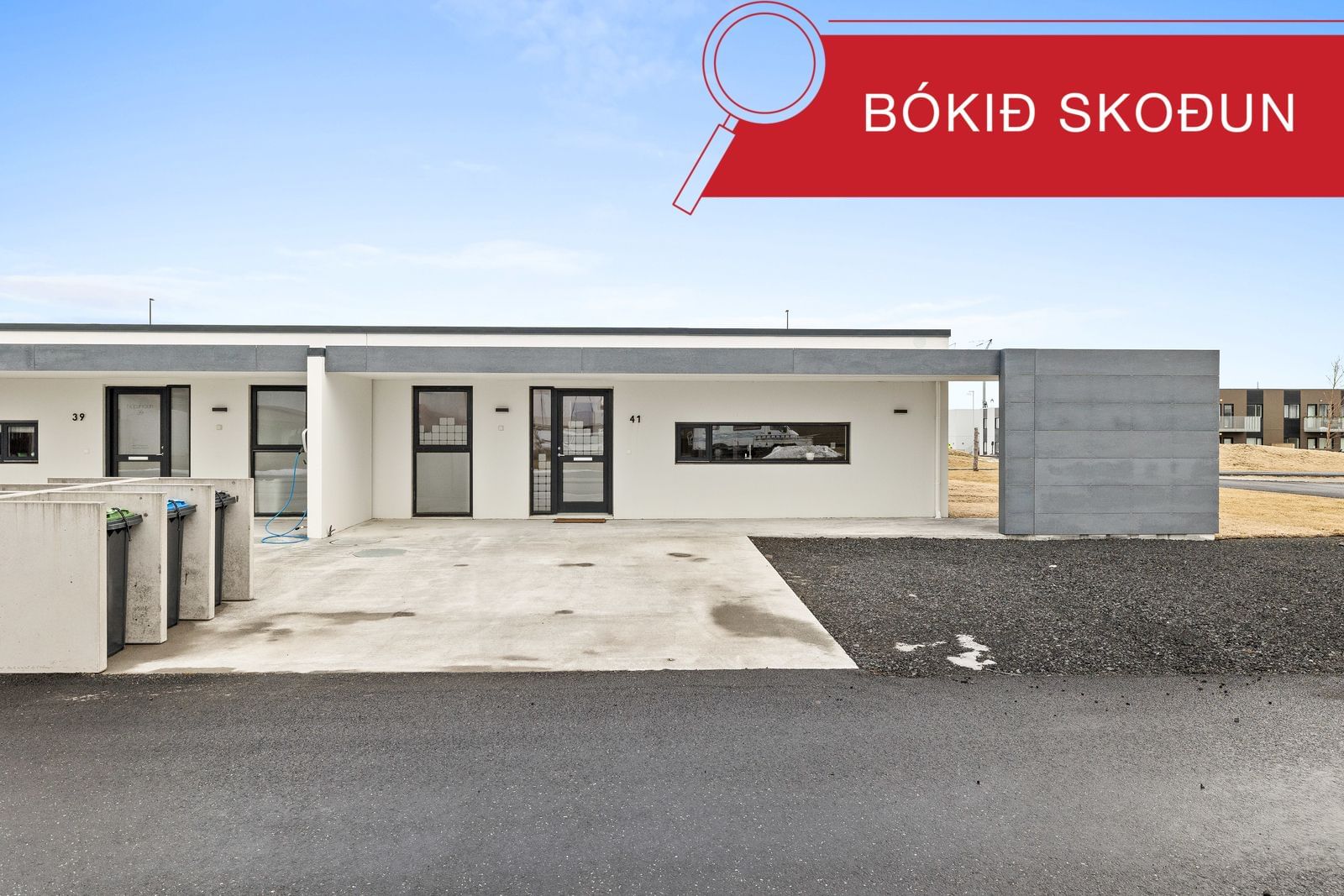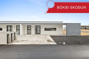 Pétur Ásgeirsson löggiltur fasteignasali hjá RE/MAX fasteignasölu kynnir : Fallegt, bjart og vel skipulagt endaraðhús með gólfhita og gólfsíðum gluggum á einni hæð með stórri lóð við Núpahraun 41, Þorlákshöfn Skv. FMR er eignin skráð 104,6 fm þar af er útigeymsla 4,6 fm