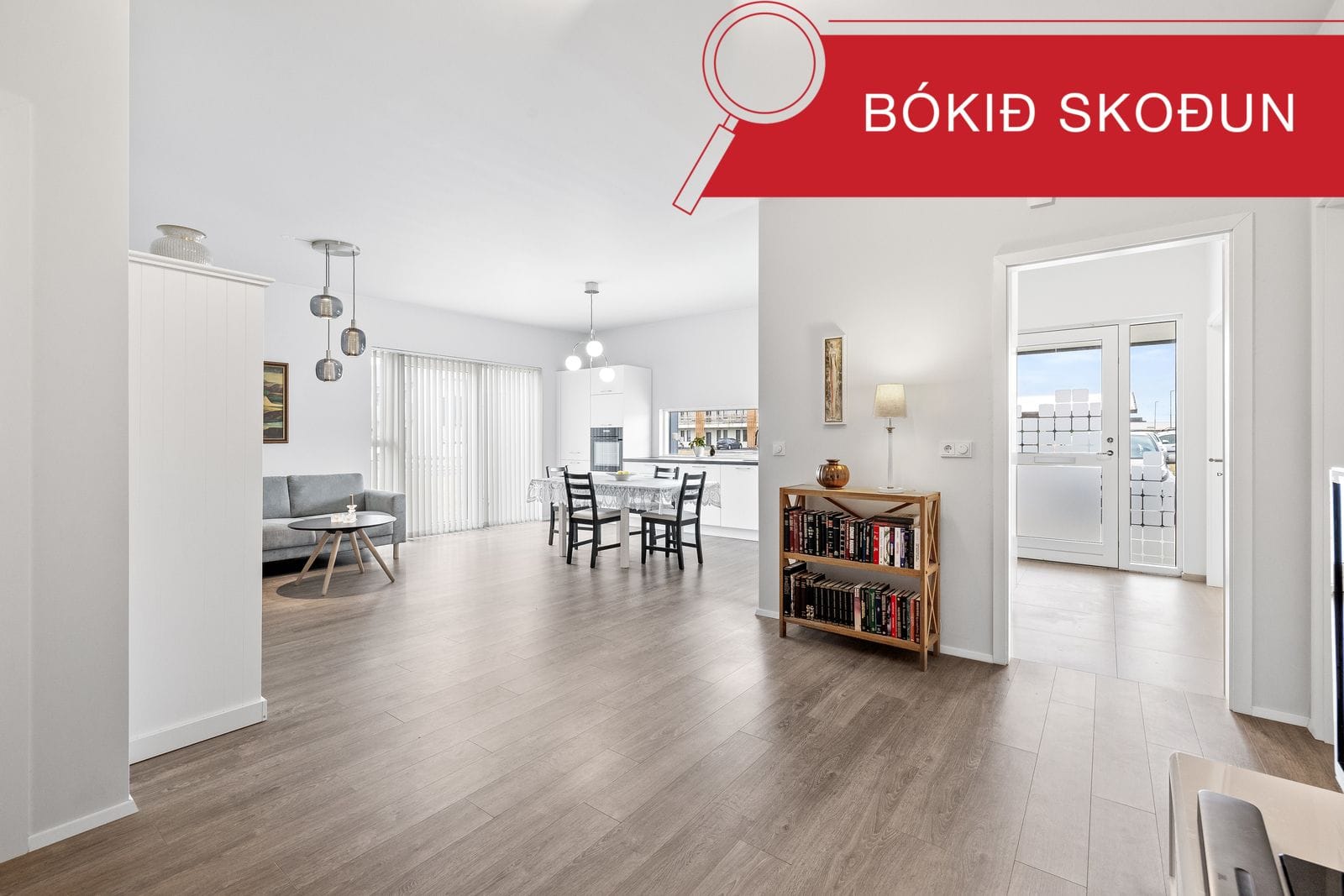 Forstofa með flísum á gólfi og rúmgóður fataskápur. Þvottahús er innangengt úr forstofu og er mjög rúmgott með vinnuvask, góðu skápaplássi og glugga. Eldhús myndar opið rými með borðstofu og stofu og er 39,6 fm, innbyggður ísskápur, helluborð, vifta, innbyggð uppþvottavél, bakaraofn í vinnuhæð, gluggi sem gefur góða birtu yfir vask. Stofan er björt og rúmgóð, útgengt út í garð/verönd um stóra rennihurð sem gefur mikla birtu inn í alrýmið. Svefnherbergin eru 3, rúmgott hjónaherbergi og barnaherbergin minni. Baðherbergi er með "walk in" sturtu, upphengdu salerni, handklæðaofni, fallegri innréttingu með nægu skápaplássi og spegil með ljósi. Útigeymsla er undir þakskyggni og er 4,6 fm Lóðin er stór með steyptri innkeyrslu og malarplani þar við hliðiná, sorptunnuskýli. Góður sérafnotareitur þar sem hægt væri að gera allt að 150fm verönd.