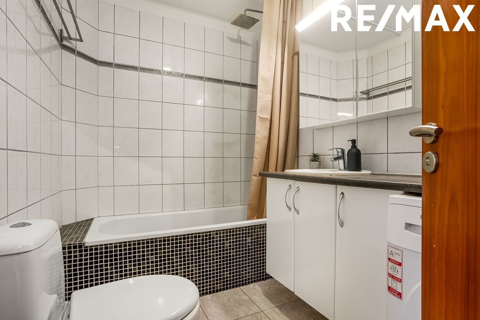 Baðherbergi/þvottahús: Er flísalagt með sturtu í baðkari. Aðstaða er fyrir þvottavél og þurrkara ásamt góðum skápum og vinnuborði.