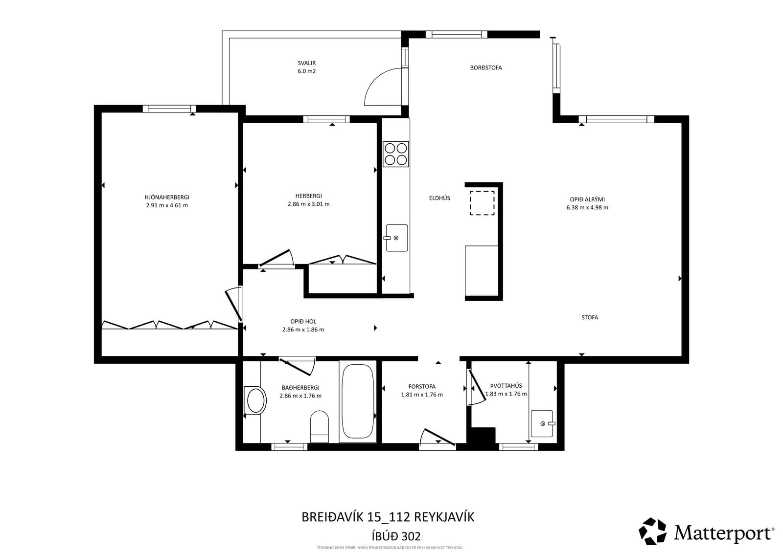 Samkvæmt HMS er birt stærð 99,5 fm, þar af er 9,4 fm. geymsla staðsett í sameign. Fyrirhugað fasteignamat 2026 er 72.500.000 kr.