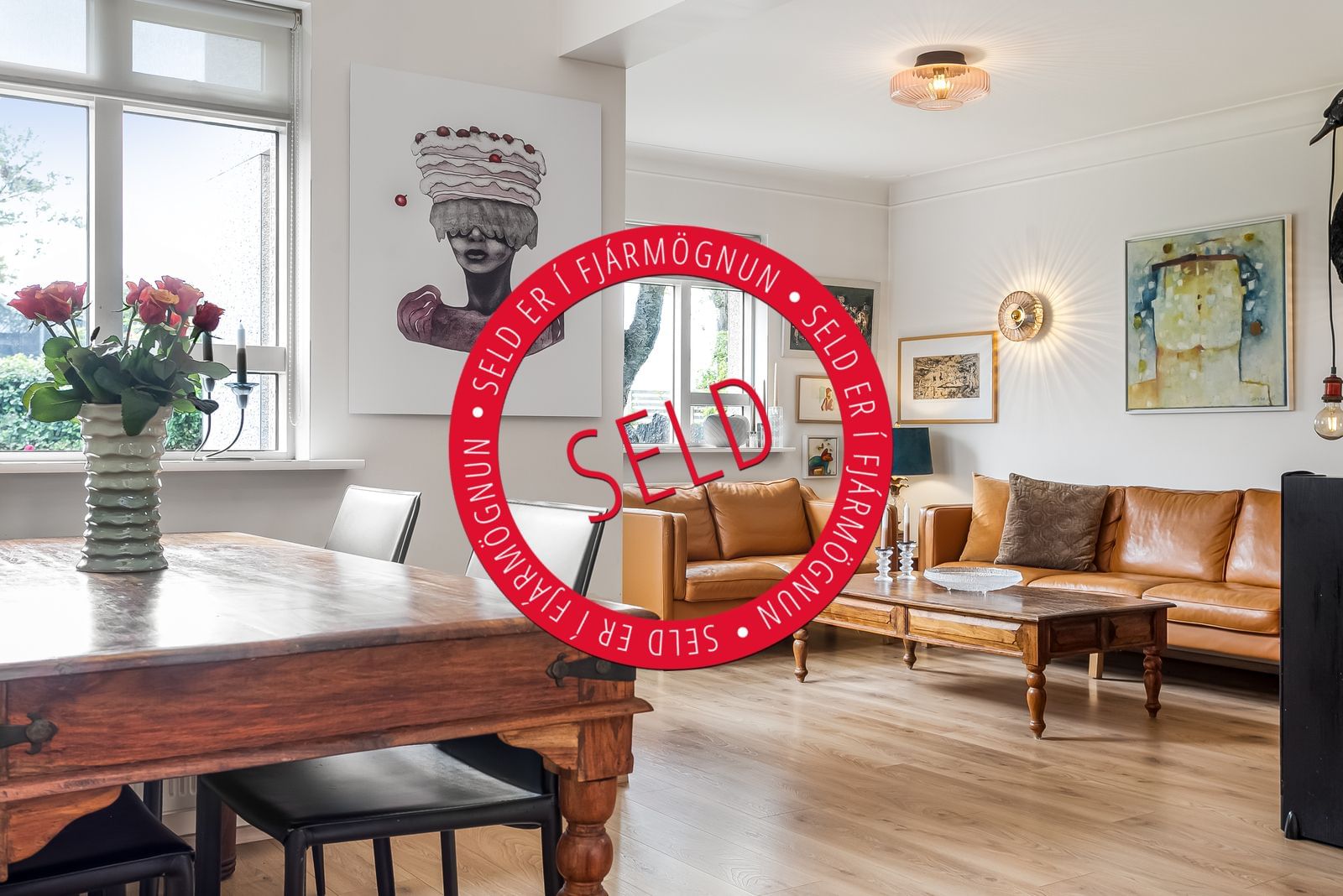 Borðstofa: Parket á gólfi. Í samliggjandi rými með eldhúsi.