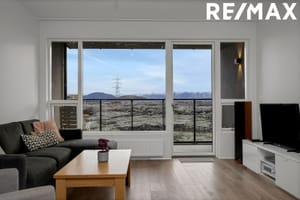 góðar svalir með einstaklega fallegu útsýni í átt til fjalla Krísuvíkur.