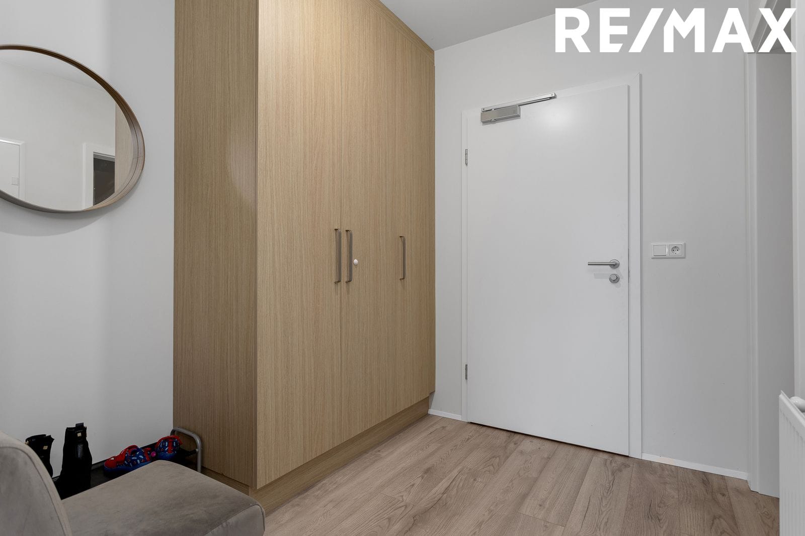 Forstofa með parket á gólfi og rúmgóðum fataskáp.