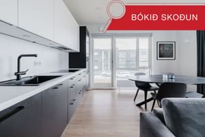 Maríugata 1 er stórglæsilegt 24 íbúða fjölbýlishús á sex hæðum byggt 2023. * Vandaðar Nobilia innréttingar frá GKS innréttingum, hvítar og hvítar og svartar * Fataskápar eru hvítir með svörtum höldum frá Parka. * Innbyggður ísskápur m. frysti, span helluborð og vifta. Blásturbakarasofn allt frá AEG, vifta frá Gíra * Blöndunartækin eru frá Tengi en svört blöndunartæki frá GKS. * Úti Inni arkitektar sér um alla hönnun á húsi