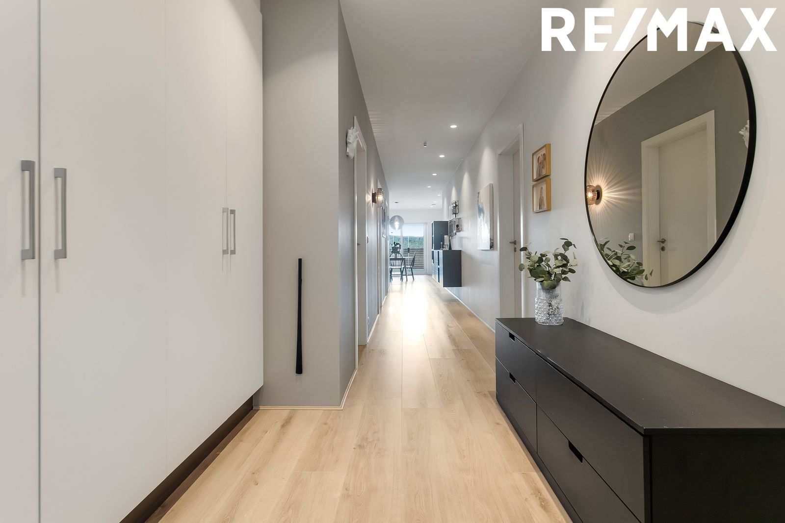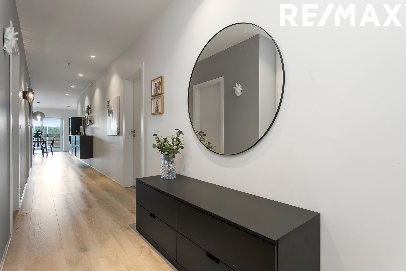 Allar innréttingar íbúðar eru frá Axis. Gangur í gegnum íbúðina er rúmgóður og nýtist því vel fyrir hirslur.
