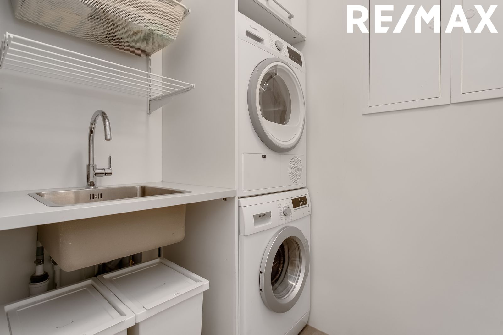 Þvottahús er með innréttingu og skolvaski. Á gólfi eru eins flísar og á baðherbergi.