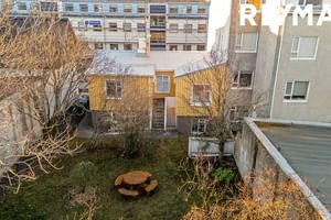 Nánari lýsing: Fálkagata 26 er kjallari, hæð og ris. Tvær íbúðir eru í kjallara og tvær á fyrstu hæð. Brúttóflötur hússins er 164,2 fm. Lóðin er 339 fm leigulóð. Leigusamningur er til 75 ára frá 1.1.1976. Sér rafmagnsmælir er fyrir hverja séreign og sérmælir fyrir sameign. Þvottavélar í þvottahúsi eru á sameiginlega mælinum. Tveir hitamælar eru í húsinu, einn fyrir íbúð 0001 og einn sameiginlegur fyrir 0002, 0101 (þessa fasteign) og 0102. Við inngang í íbúðina er komið í forstofu þar sem er fatahengi. Frá forstofu til hægri er komið inn í eldhús. Eldhúsið er með innréttingu og tækjum frá 2019 og parketi á gólfi. Gluggi er í eldhúsi með útsýni yfir fallegan og stóran garð við húsið. Frá forstofu er gengið inn í bjarta stofu og frá stofu er gengið inn í svefnherbergi. Stofan og svefnherbergi eru með nýlegum gluggum og gleri sem snúa að Fálkagötunni. Parket er á gólfi í stofu og svefnherbergi. Á baðherbergi er upphengt WC ásamt sturtu og handlaug. Steinn er á baðherbergisgólfi og er gólfið tilbúið til flísalagnar. Í sameign er sameiginlegt þvottahús / geymsla í kjallara. Garðurinn er stór með mikla möguleika. Sér inngangur er í allar íbúðir í húsinu.