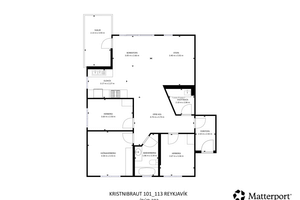 Eikarparket á gólfum sem og eikarinnréttingar og innihurðar.