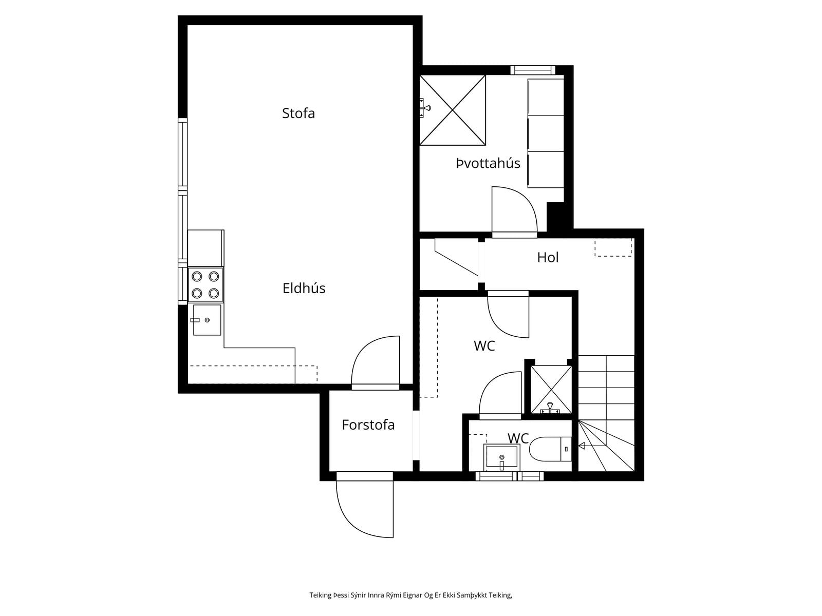 Neðri hæð. Forstofa: Flísar á gólfi. 30 fm bílskúr: Sem er búið að innrétta sem litla íbúð. Parket og flísar á gólfi. Búið að útbúa lítið eldhús með ágætis skápaplássi. Baðherbergi: Flísalagt í hólf og gólf. Walk in sturta, með fallegri innréttingu og upphengdu salerni. Þvottahús: Flísar á gólfi og hluta af veggjum. Mjög rúmgott og búið að útbúa auka sturtu.