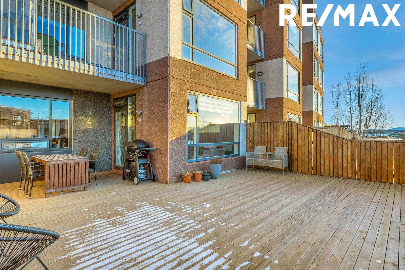 Nánari lýsing: Forstofa: Með parketi á gólfi og góðum skápum sem ná upp í loft. Gangur: Með parketi á gólfi. Stofa/Borðstofa: Er stór með parketi á gólfi og góðum gluggum til suðurs. Stofa er opin við eldhús og rúmar vel setustofu og borðstofu. Útgengi á viðarverönd með skjólveggjum til suðurs. Eldhús: Er rúmgott með parketi á gólfi og fallegri viðar eldhúsinnréttingu með miklu skápaplássi og granít stein á borðum. Bakaraofn í vinnuhæð, keramik helluborð, stál háfur og innbyggð uppþvottavél. Góður borðkrókur og gluggar til suðurs. Eldhús er opið við stofu. Svefnherbergi: Er stórt, með parketi á gólfi og góðum skápum á heilan vegg sem ná upp í loft. Gluggi til norðurs. Baðherbergi: Með flísum á gólfi og á veggjum. Baðkar með sturtutækjum. Falleg innrétting við vask með speglaskáp fyrir ofan. Upphengt salerni, handklæðaofn og útloftun. Þvottaherbergi: Er staðsett innan íbúðar. Flísar á gólfi, tengi fyrir þvottavél og þurrkara, hillur og útloftun.