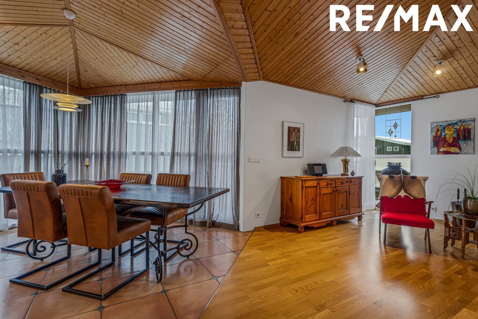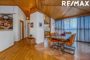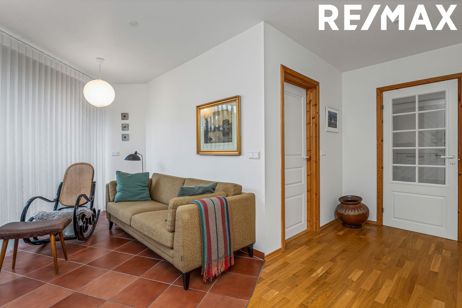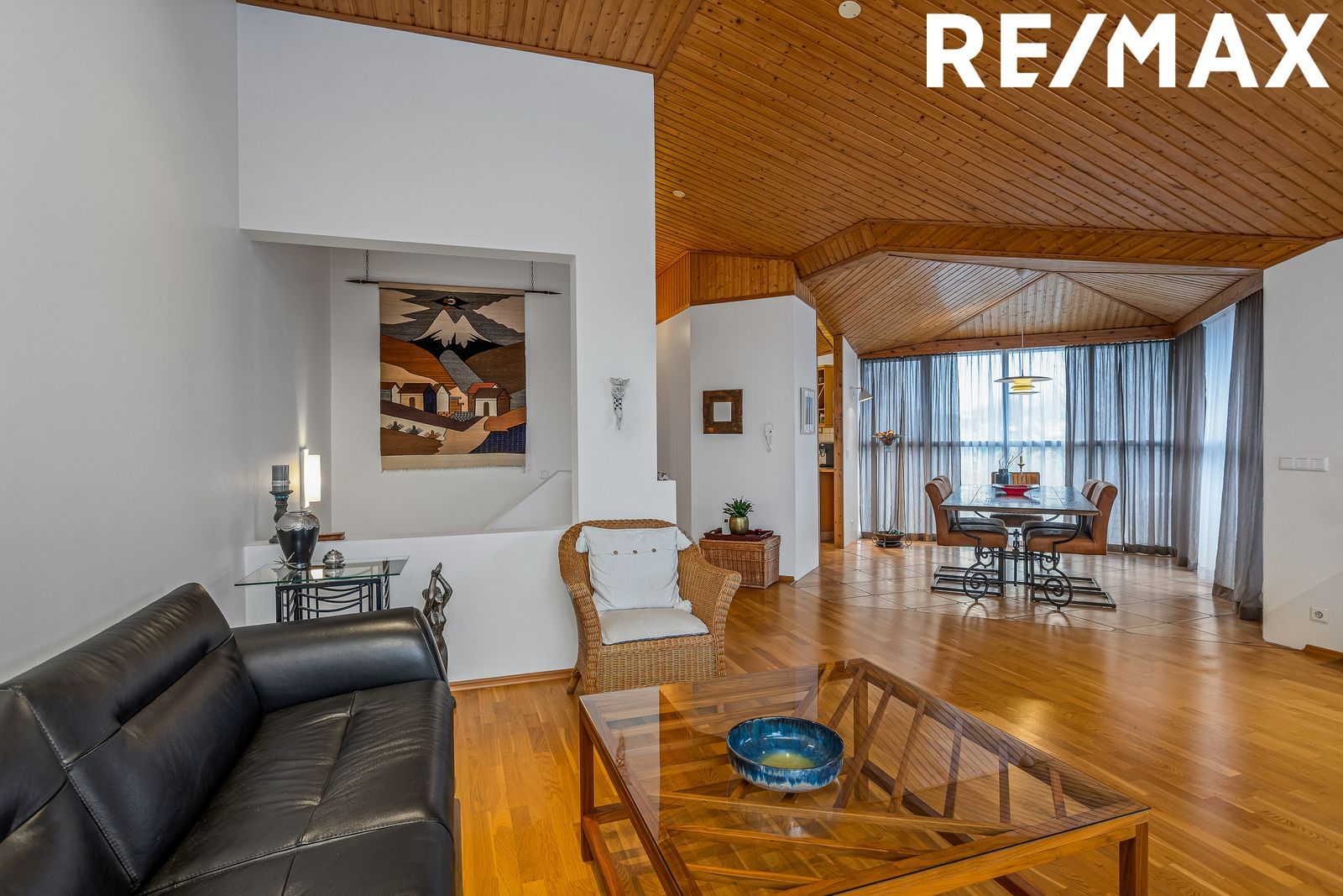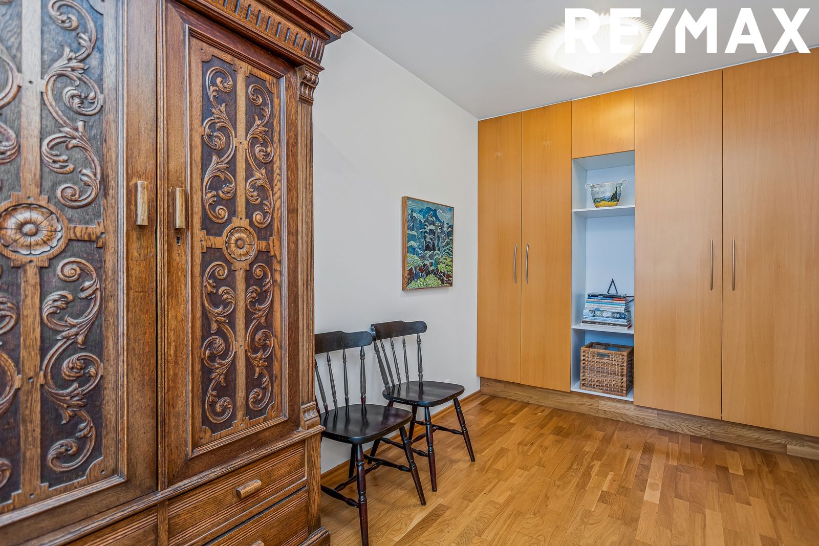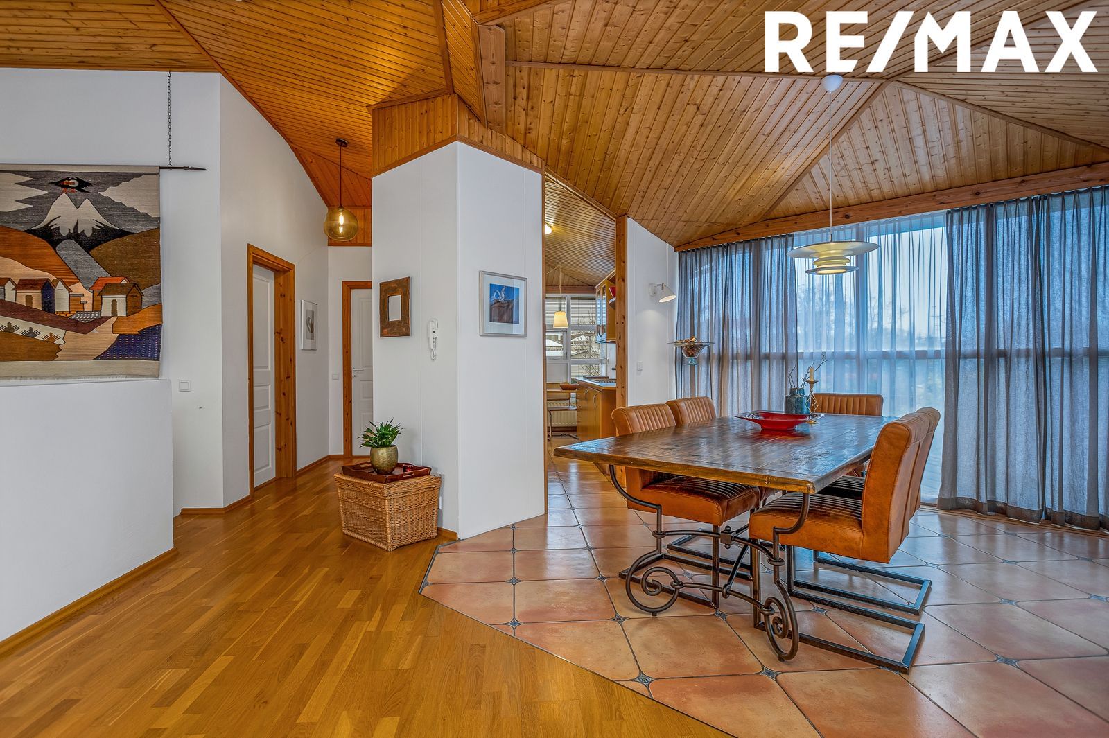 2. hæð Stigi upp er parketlagður, pússaður og lakkaður árið 2021. Stofan er stór og með hárri lofthæð. Parket á gólfi. Borðstofa er á milli eldhúss og stofu, flísar á gólfi og gólfsíðir gluggar. Útgengt frá borðstofu út á 28 m² svalir. Svalagólf var endurgert 2020. Eldhús er inn af borðstofu. Innréttting með miklu skápaplássi, bökunarofn í vinnuhæð, flísar á milli skápa. Borðkrókur við henda eldhúss. Flísar á gólfi. Baðherbergi 2 er flísalagt í hólf og gólf. Klósett, vaskur, handklæðaofn og baðkar. Herbergi 4 er parketlagt með gluggum á tveim hliðum. Stór fataskápur.