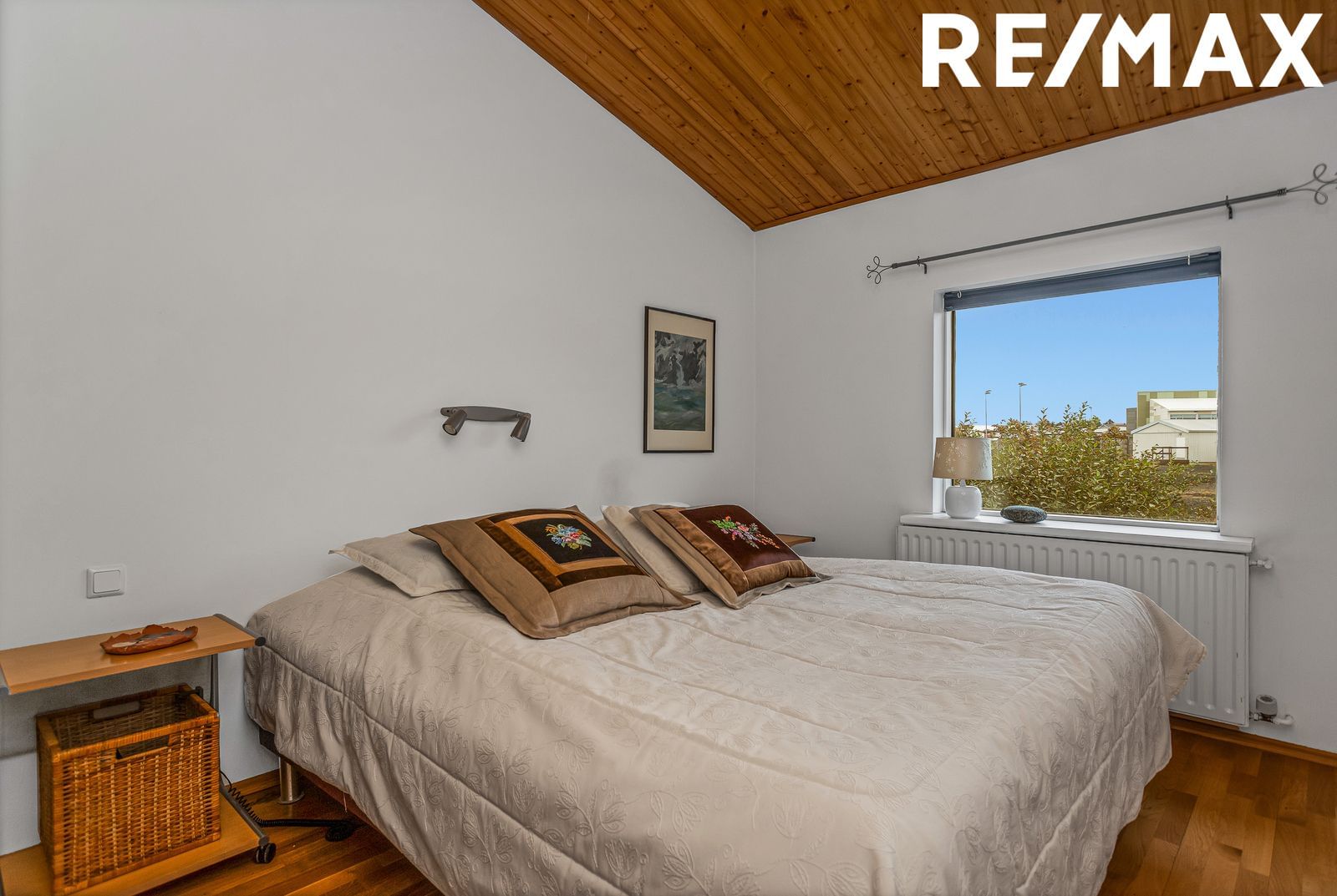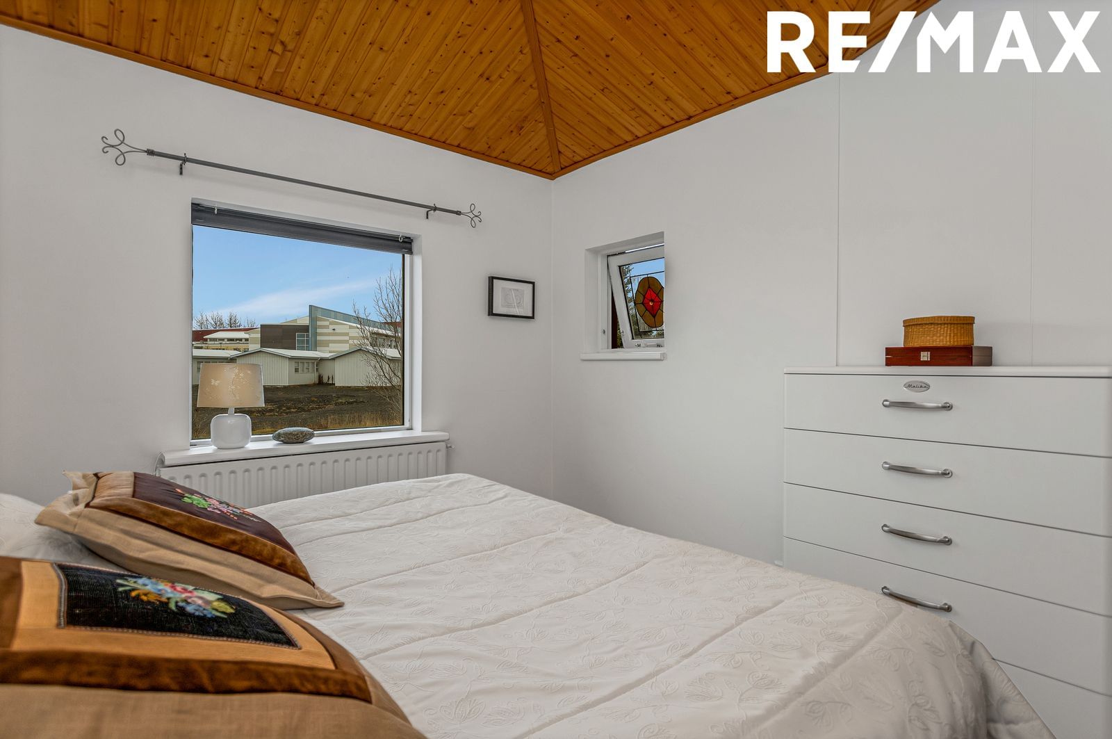 Nánari lýsing: 1.hæð Anddyrið er með flísum á gólfi og fataskápur. Innangengt í bílskúr frá anddyrinu. Herbergi 1 er rúmgott með parketi á gólfi og stórum fataskáp. Sjónvarpshol með flísum á gólfi og stórum gólfsíðum gluggum. Möguleiki að breyta í herbergi. Herbergi 2 er stórt með parket á gólfi og 3földum fataskáp. Herbergi 3 er með parket á gólfi og gluggum á tveimur hliðum. Baðherbergi flísalagt í hólf og gólf. Upphengt klósett, sturta, handklæðaofn, innbyggðir skápar. Þvottahús með flísum á gólfi, vinnuvask og glugga fyrir loftun. Bílskúr er stór með opnanlegum fögum og innangengt í anddyrið. (Hægt að fá myndir senda á emaili - brynjar@remax.is)