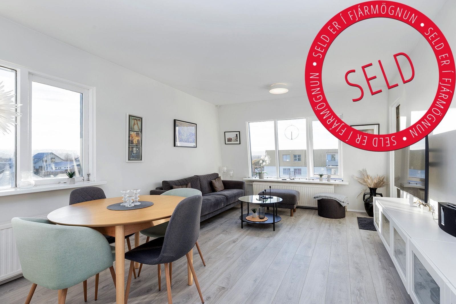 Bjarni Blöndal löggiltur fasteignasali (s:662-6163 netfang: bjarni@remax.is) kynnir snyrtilega 2 herbergja íbúð á efstu hæð í klæddu fjölbýli innst í Seláshverfi ásamt bílastæði í lokaðri bílageymslu. Íbúðin er skráð 57,6fm & bílageymsla 21,8fm, samtals skráð stærð 79,4fm. Útgengt á skjólgóðar suður svalir. Nýlega er búið að skipta um eldhúsinnréttingu. Mjög góð staðsetning, stutt er í grunn og leikskóla og í verslun og þjónustu í hverfinu. Fallegar gönguleiðir í Elliðaárdalnum eru í næsta nágrenni ásamt Árbæjarlaug og íþróttasvæði Fylkis. Fasteignamat 2026 er 53.100.000. Nánari lýsing:Hol með parketi á gólfi og skáp.