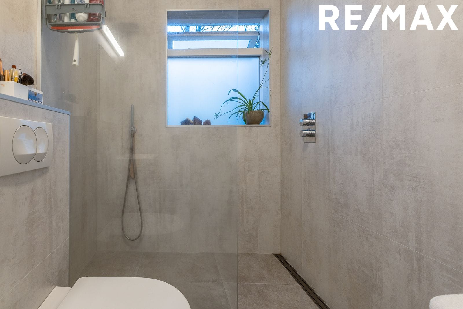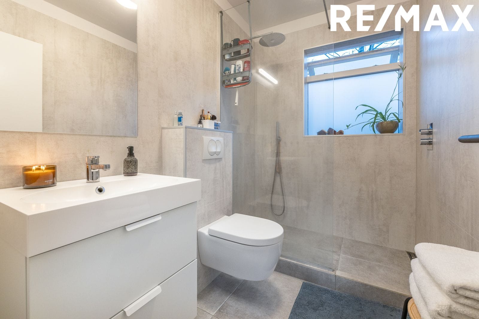 BAÐHERBERGI: Baðherbergið var líka endurnýjað á sama tíma og eldhúsið eða 2021. Sett voru ný blöndunartæki handlaug, handklæðaofn, vegghengt salerni og innrétting. Gluggi með opnanlegu fagi er á baðherbergi og rúmgóð walk in sturta.